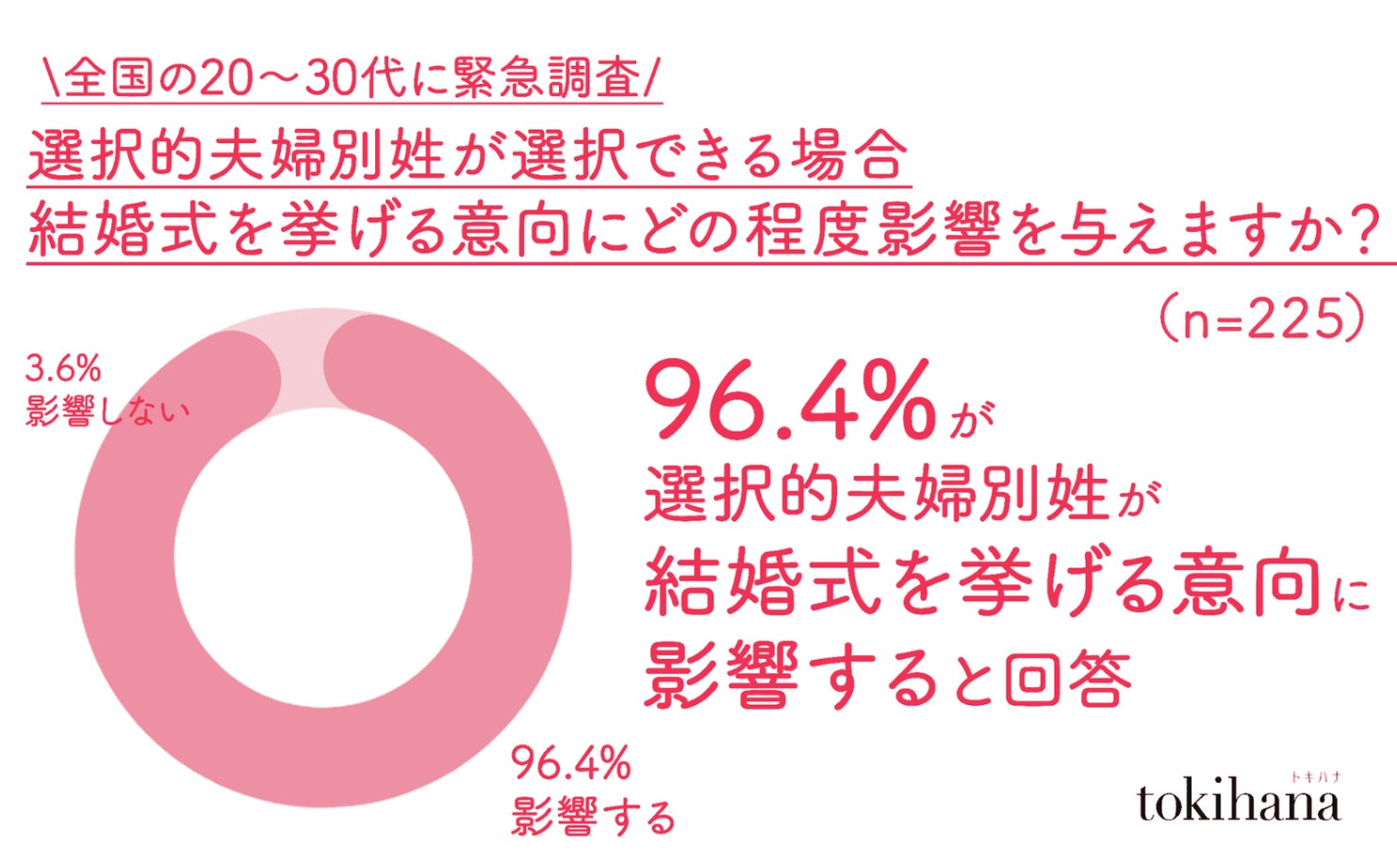 ・96.4%が「選択的夫婦別姓が結婚式を挙げる意向に影響する」と回答