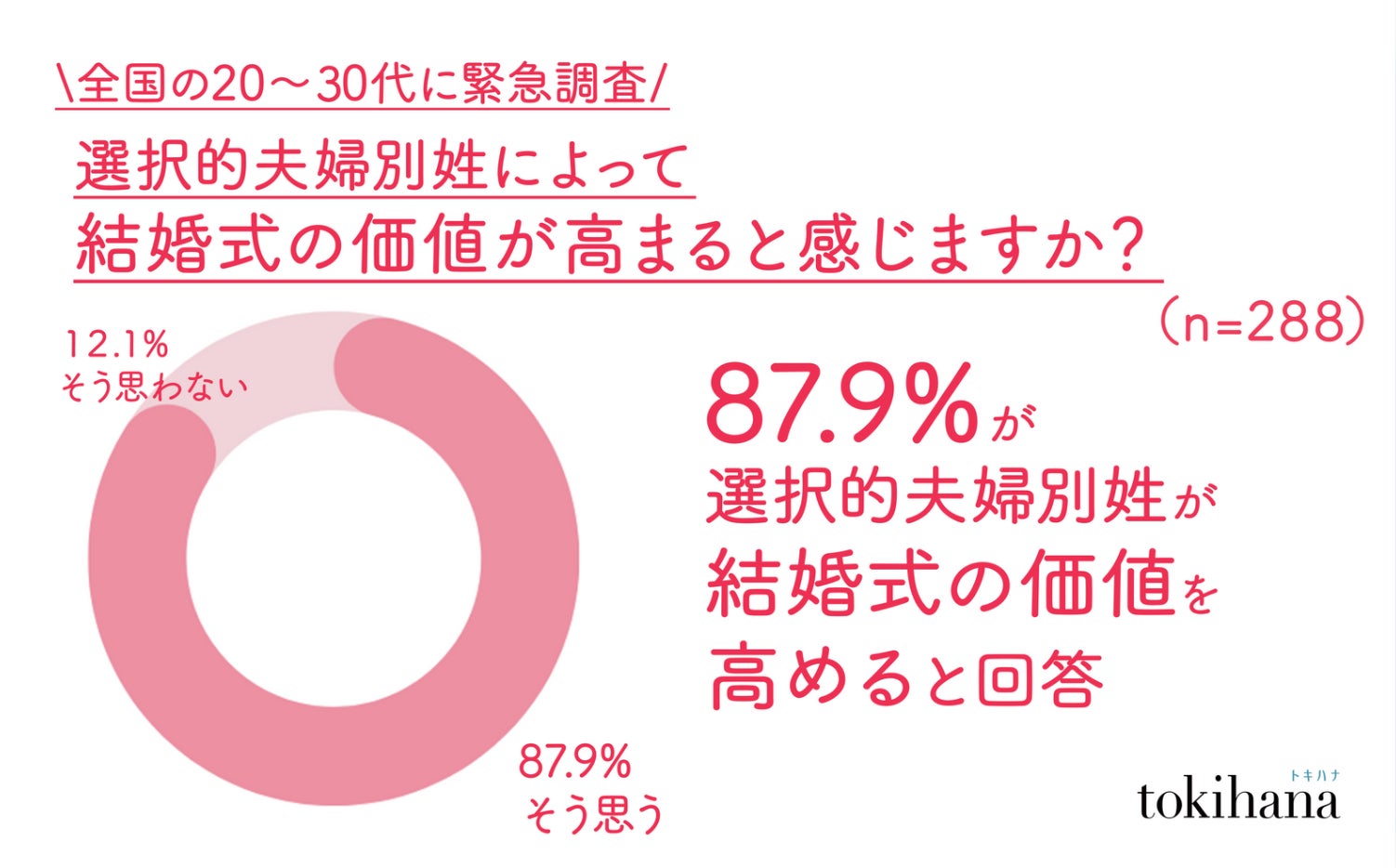 ・87.9%が「選択的夫婦別姓が結婚式の価値を高める」と回答