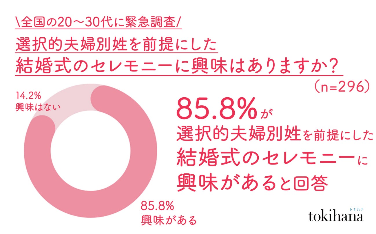 ・全体のうち85.8%が選択的夫婦別姓を前提にした結婚式のセレモニーに興味がある