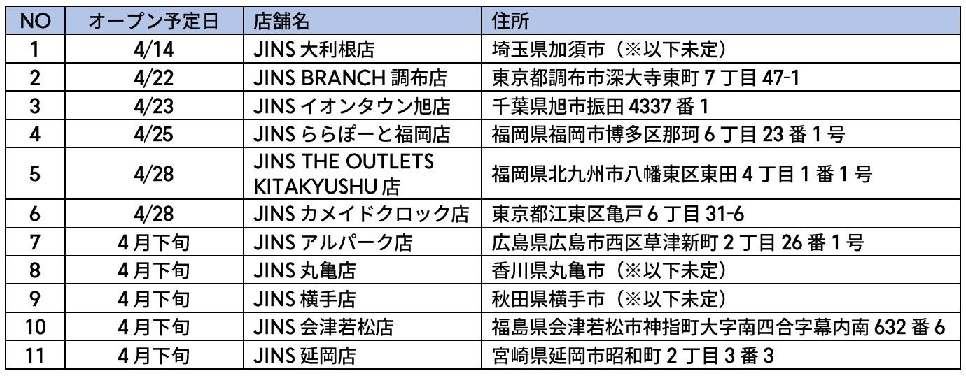 【対象者】2022年4月に新規オープンするJINS店舗に4月15日(金)までに入社いただいた準社員、パートタイムの方全員