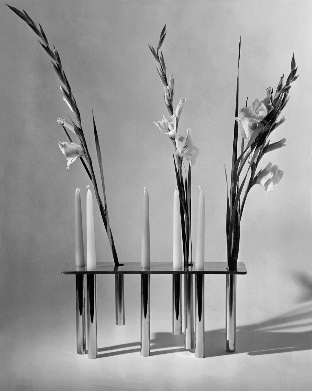アイコニックで多機能なオブジェである POMPEI は、キャンドルホルダーとして、あるいは花器として、テーブルのセンターピースやさまざまな住空間に美しく佇みます。わずか3点で支えられたその姿は、大胆な建築構造を想起させます。エレガンスと用途の広さを兼ね備えた、象徴的な作品です。