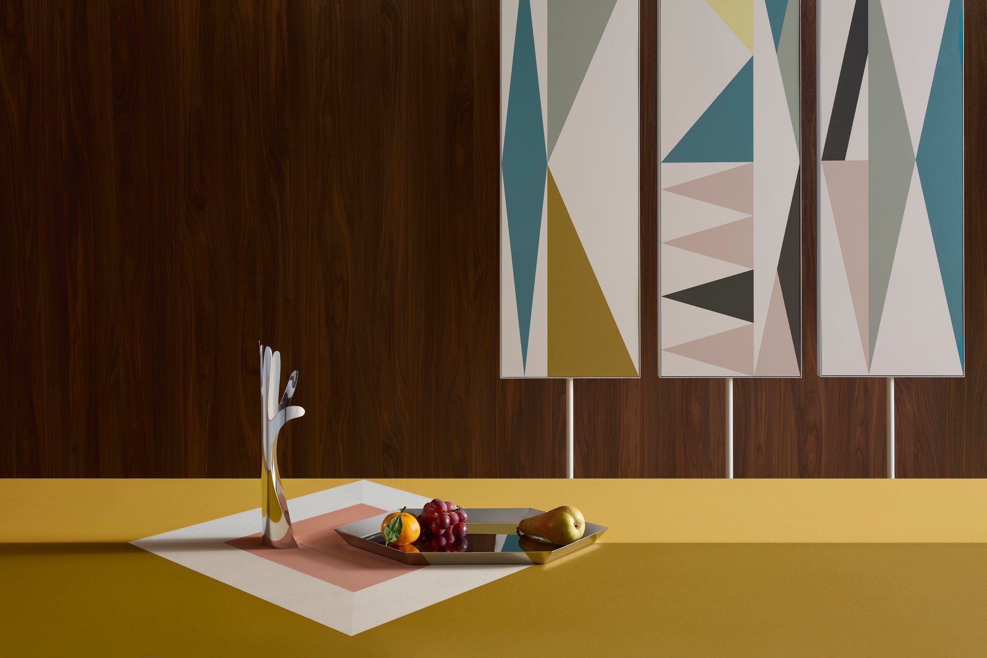 イタリア語で“建築”を意味する ARCHITETTURA は、ジオ・ポンティが長年探究してきた"六角形"の取っ手を持たないトレイです。そのフォルムは代表作「ピレリ・タワー」の平面図を想起させ、都市計画から家具までを一貫した建築的視座で捉えたポンティの思想を体現しています。無駄を削ぎ落とした潔い美しさと構造的ダイナミズムを兼ね備えた象徴的な建築作品へのオマージュとなっています。