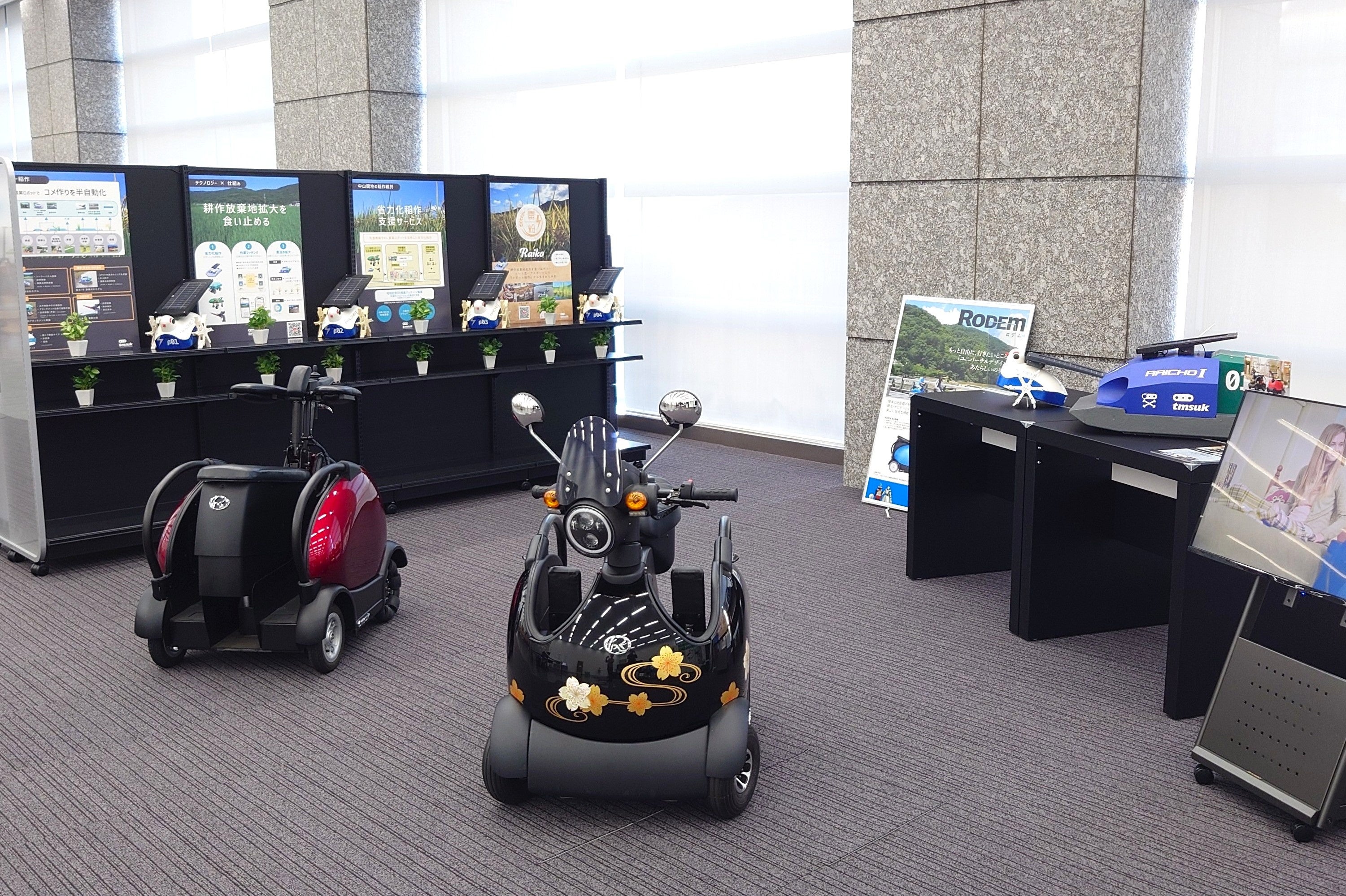 株式会社テムザック(本店:京都府京都市、代表取締役社長:川久保 勇次、以下「テムザック」)は、株式会社ノジマ(本社:東京都港区、代表執行役社長・野島 廣司、以下「ノジマ」)が品川インターシティに新たにオープンしたロボットショールーム「MIRAI ROBO SQUARE(ミライロボスクエア)」にて、農業ロボット・モビリティ型ロボットの展示を開始いたしました。モビリティ型ロボット「RODEM」には、実際に試乗いただくことも可能です。