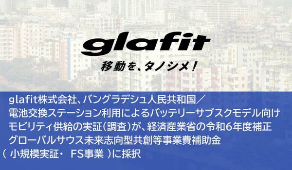glafit株式会社、バングラデシュ人民共和国/バッテリーサブスクモデル向けモビリティ供給実証が、経済産業省の令和6年度補正グローバルサウス未来志向型共創等事業費補助金( 小規模実証 )に採択