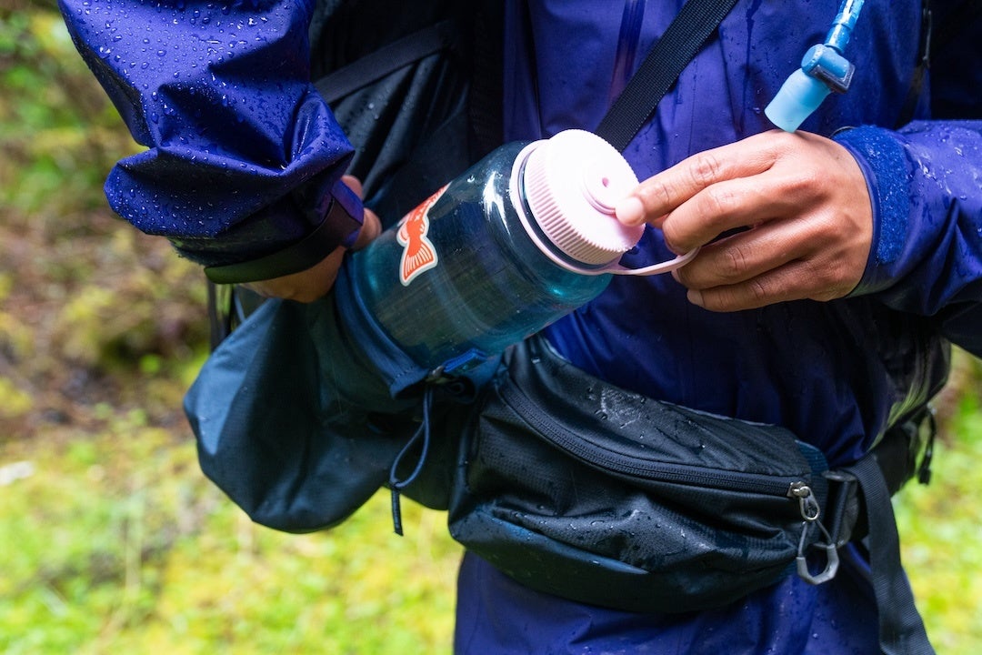 スマートフォンやトレイルの必需品を収納できる、大きめのジッパー付きヒップベルトポケット