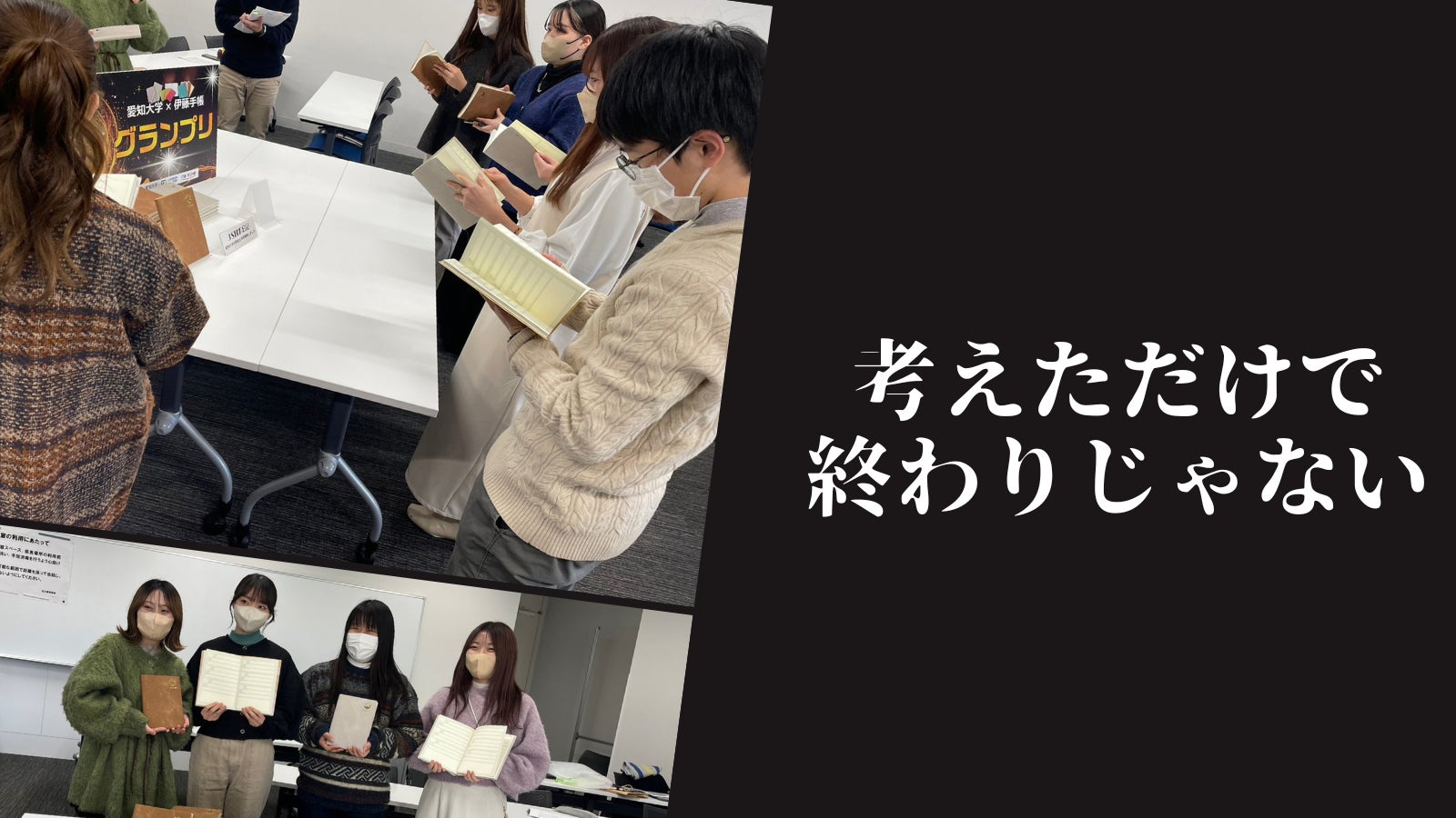 「Z世代大学生が使いたくなる日記制作プロジェクト」。ゼミ受講前の大学1-2年生から募集を行い、6チーム18名が参加。伊藤手帳の工場見学、商品開発、販売プログラムの履修後、製品化を前提とした大学生のための日記企画を実施。10月27日に開催されたプレゼン選考会にて最優秀チームの企画が製品化となる。完成品発表会後は最優秀チームの学生全員でプロモーション活動を行い2022年12月23日より正式販売となります。販売は伊藤手帳ECサイトユメキロックと愛知大学生協(名古屋・豊橋校舎)で行われます。
