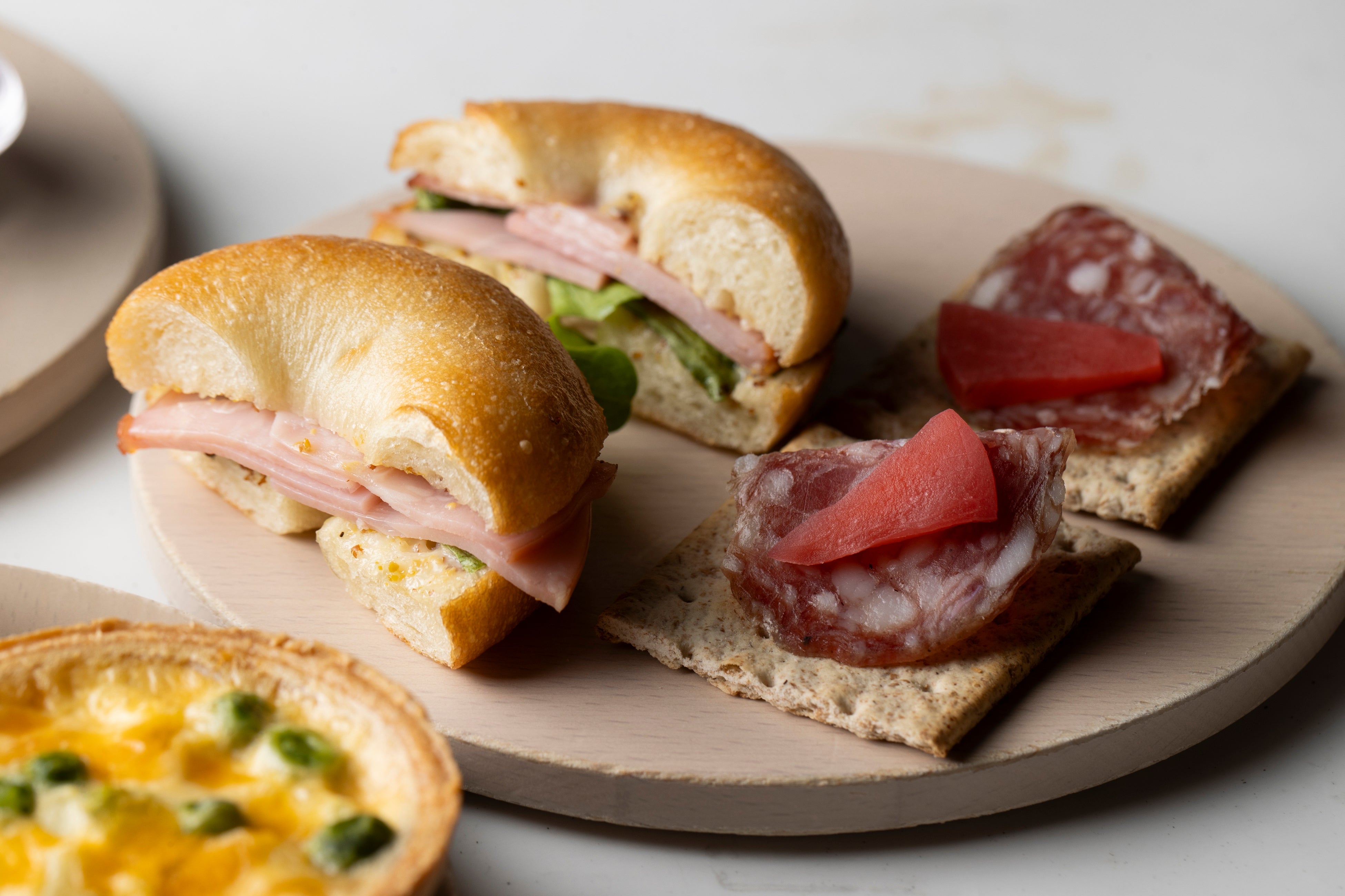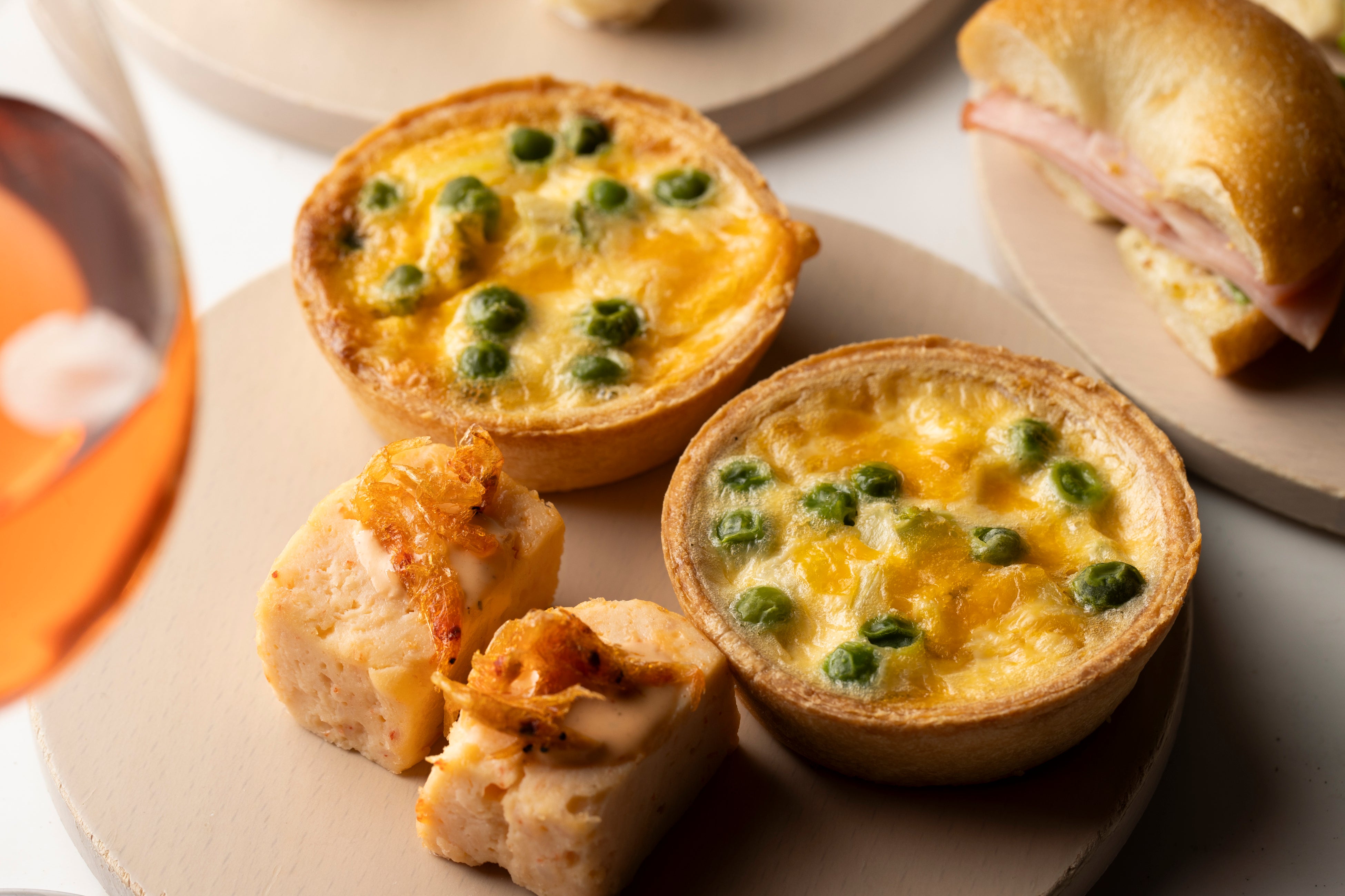 セイボリーには、海老の濃厚な味わいと香ばしさが魅力の「桜海老と海老のムース」、鮮やかないろどりと食感のアクセントを楽しめる「グリーンピースのキッシュ」など、フレンチならではの4種をピック。