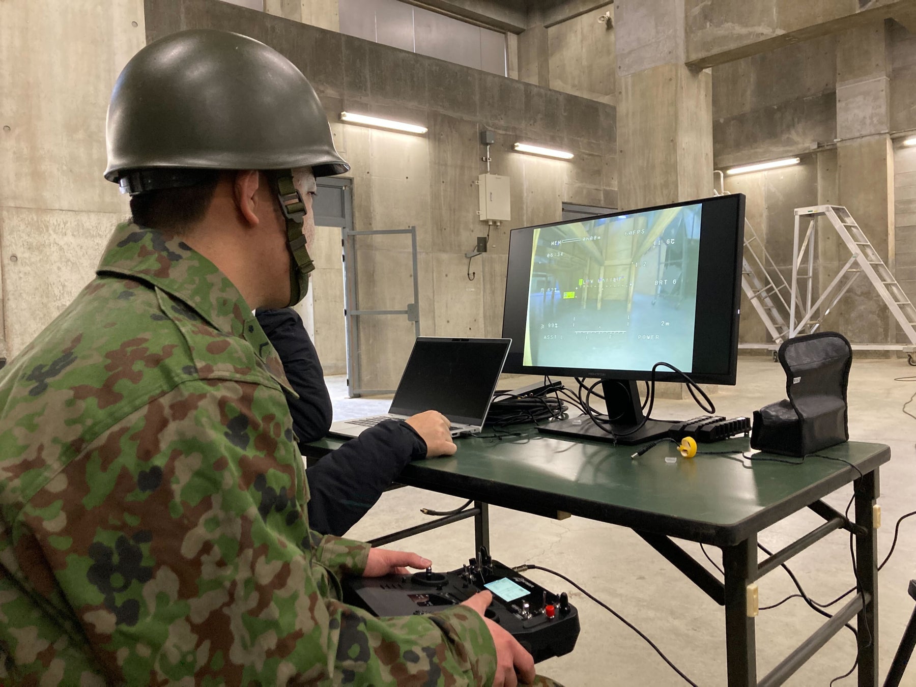 ● 陸上自衛隊員が訓練場で「IBIS2」を操縦体験