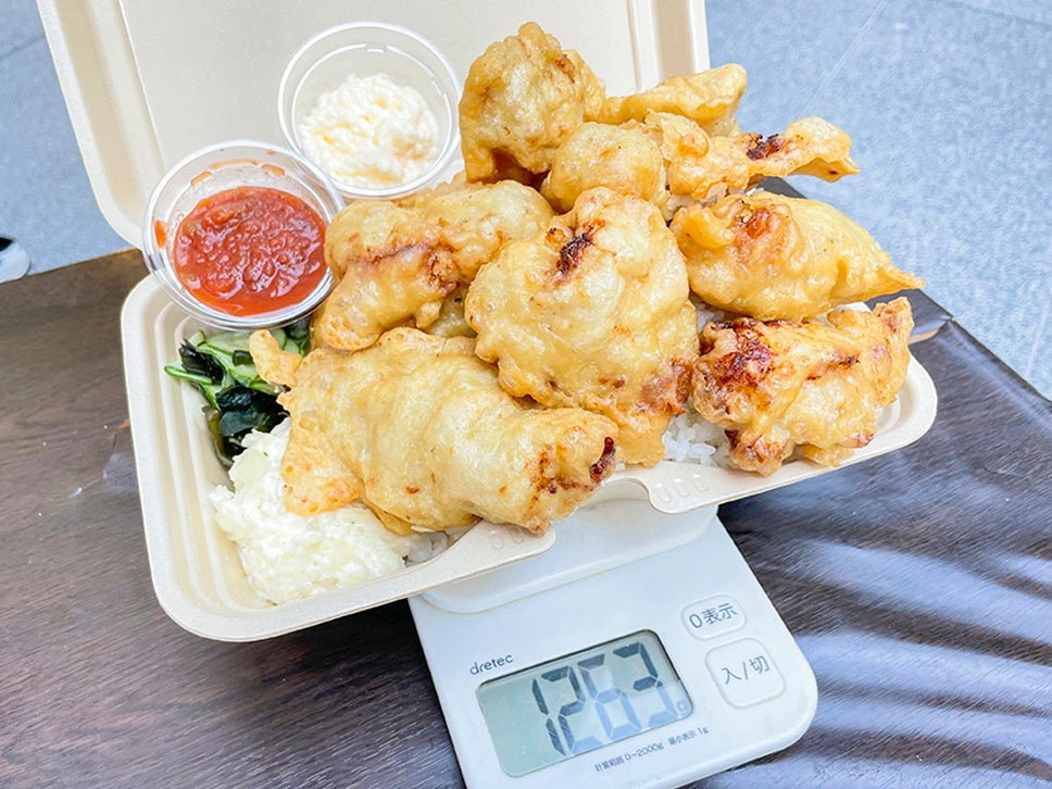 からあげ弁当ごはんメガ盛り唐揚げ追加1160円(普通盛りももの唐揚げ5個は680円・ささみの唐揚げ5個は670円)/会心のからあげ 山田