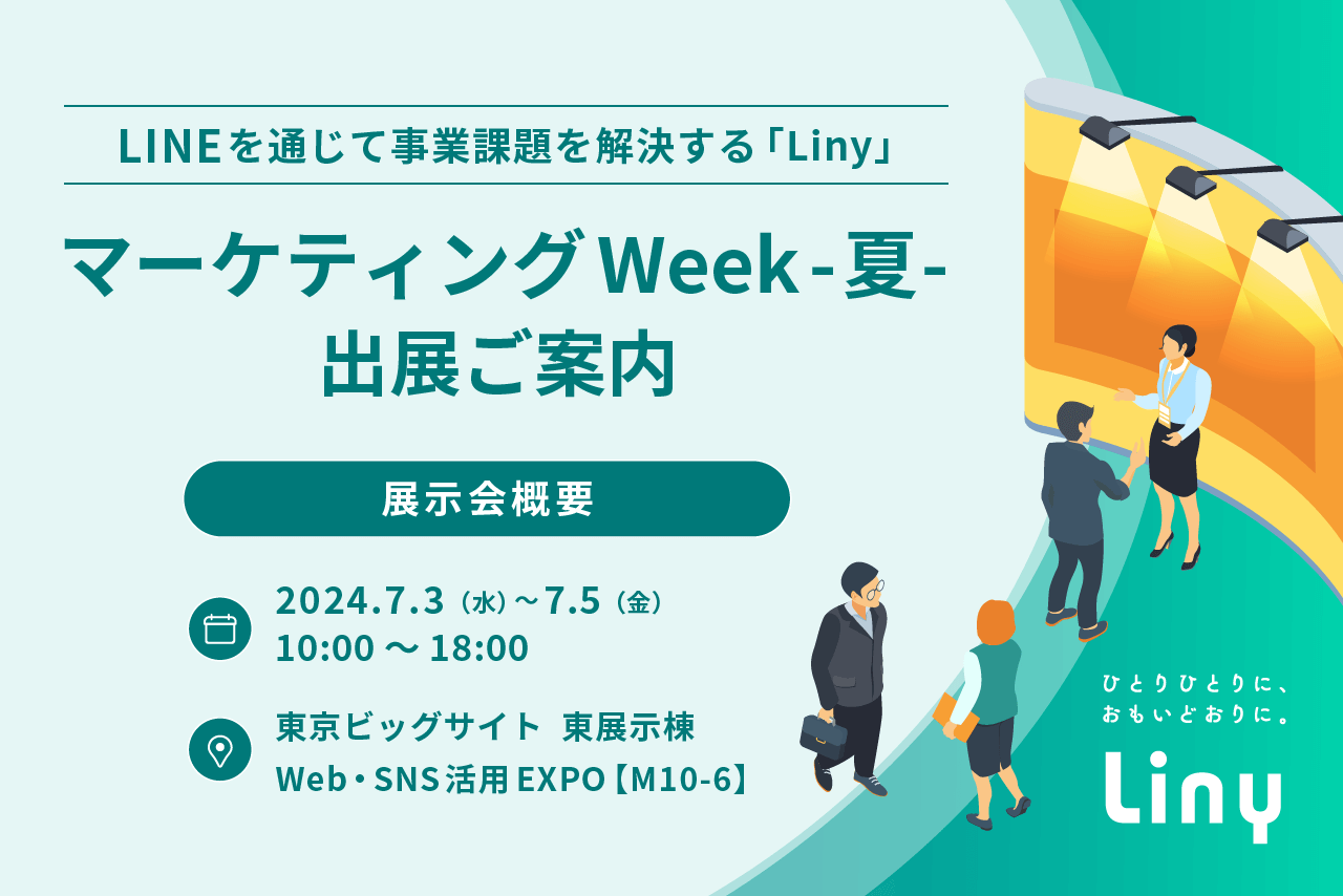 LINEを通じて事業課題を解決に導く『Liny』 日本最大級のマーケティング展「第16回マーケティングWeek-夏 2024-」に出展