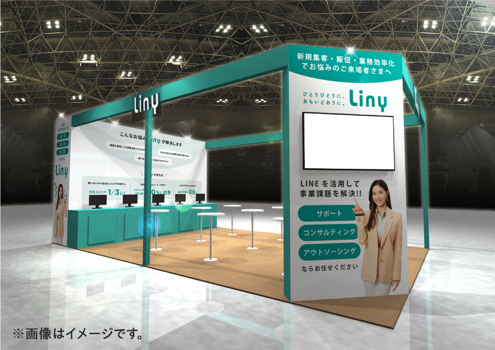 出展ブースでは、集客・販促・業務効率化にお悩みの担当者の方へ「LINEを通じた事業課題の解決」をテーマに、LINE公式アカウントの機能を拡張しコンテンツの配信・運用・顧客管理をサポートするツール「Liny」についてご紹介いたします。