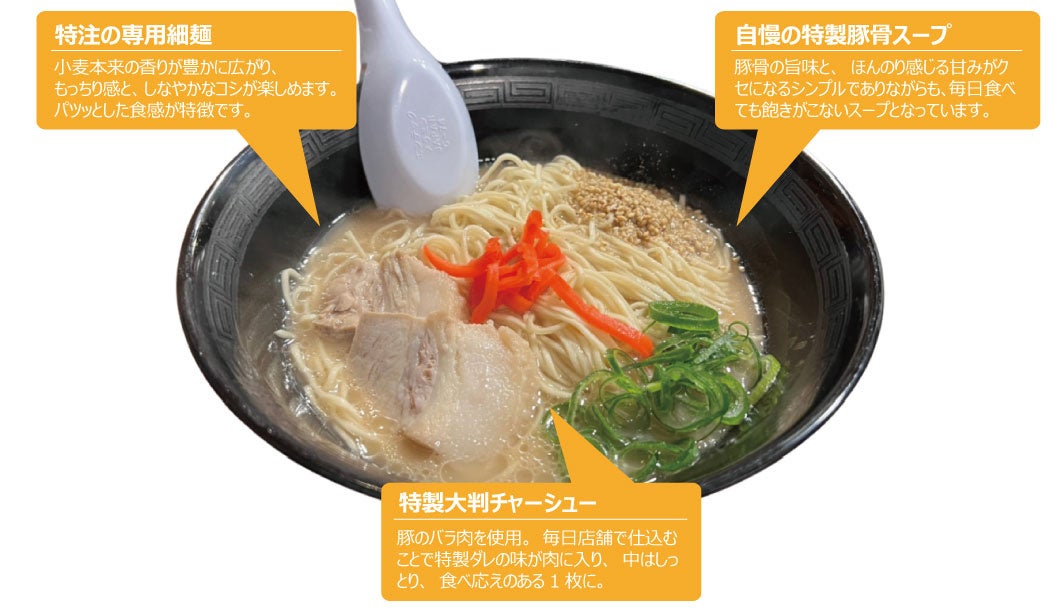 世界10カ国90店舗以上を展開、ラーメンのグローバルブランド、博多⼀幸舎や幸ちゃんラーメンを運営する、株式会社ウインズジャパンホールディングス(所在地 福岡県福岡市博多区、代表取締役社⻑ 吉村 幸助 以下当社)は、「多国籍屋台El Bajon(エル・バホン)」(代表者 大坪 裕哉)とプロデュース契約を結び、屋台でもお楽しみいただける、博多豚骨ラーメンの商品プロデュースを行いました。豚骨ラーメンは冬季限定商品として提供しておりましたが、「優しい味で食べやすい!」と豚骨ラーメンを目的にご来店されるお客様も多数おられたことから、この度、年間販売商品としてレギュラー化することになりました。福岡の屋台でお食事の際は、本場博多の豚骨ラーメンと本格多国籍料理がお召し上がりいただける多国籍屋台El Bajon(エル・バホン)へお立ち寄りください。