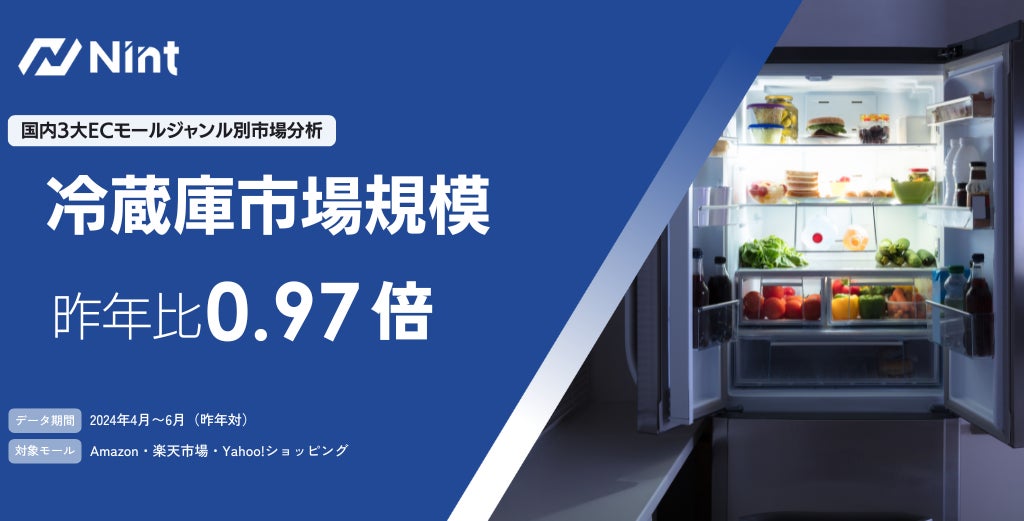 「データの価値、人の可能性が輝く世界」をビジョンに、国内大手ECモールの市場動向データ分析ツール「Nint ECommerce」(https://www.nint.jp/ec/) を提供する株式会社Nint(本社:東京都新宿区、代表取締役:吉野順子 以下、「Nint」)は、2024年4~6月におけるECモールの冷蔵庫市場について調査いたしましたのでお知らせいたします。