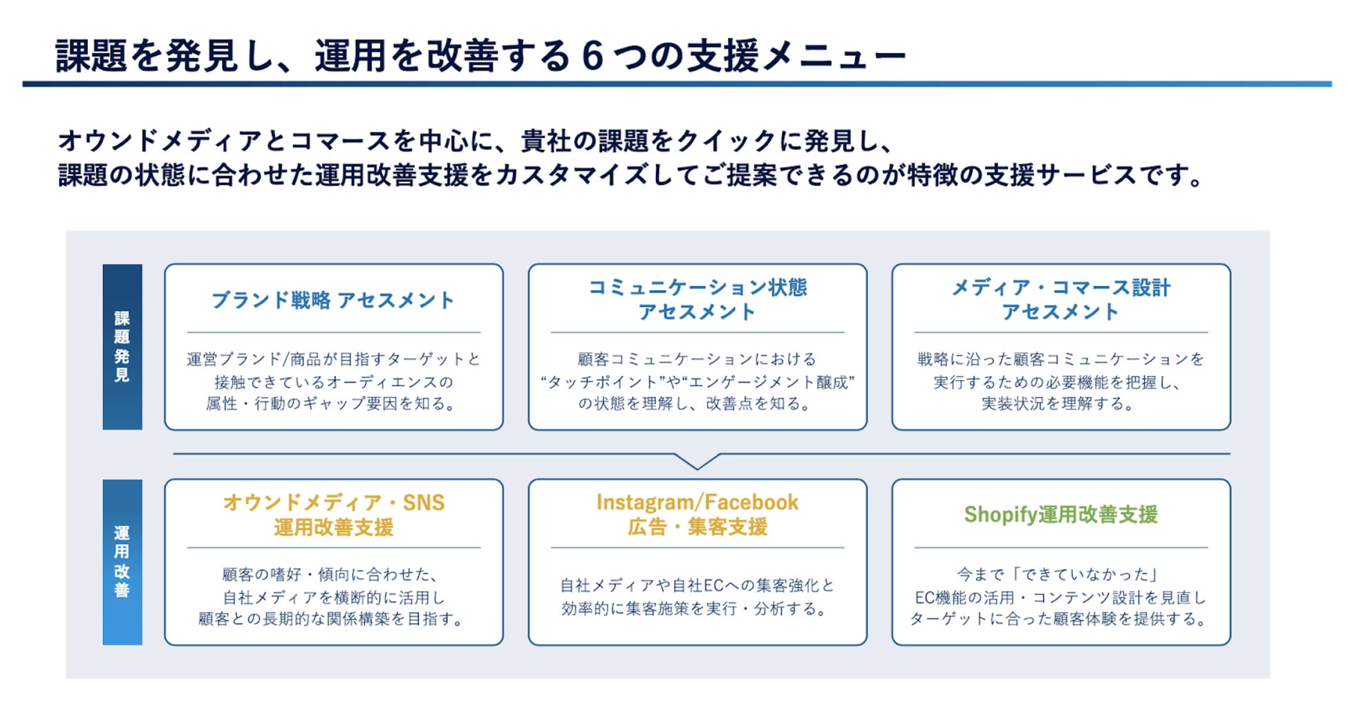 ・ 「オウンドメディア・SNS運用改善支援」:メディア・SNS運用を通じ、エンゲージメント向上を目指す企業様向け