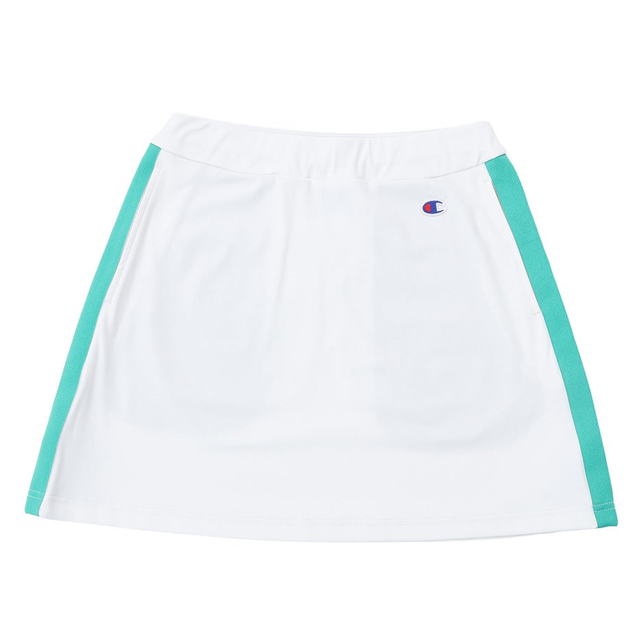 ポリエステルの捲縮(けんしゅく)糸を使用した、肌触りの良いドライ感と軽量感が特長のスカートです。静電気を抑制する縫製糸を使用し、撥水加工も行っているので、より快適にプレーが楽しめます。ウエストはゴム入り仕様で、右脇にChampion(チャンピオン)ロゴを刺繍したスラッシュポケット、正面にコインポケット、後部にDカンを付けています。豊富な5色展開で、コーディネートを楽しめます。