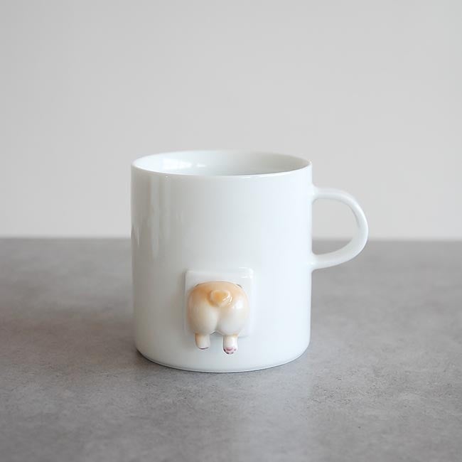 穴に首を突っ込むコーギーのお尻が可愛いマグカップ。遊び心溢れるデザインで、目に入る度に癒されそうです。リモートワークのおともにもぴったりで、長く愛用したくなるアイテムです。