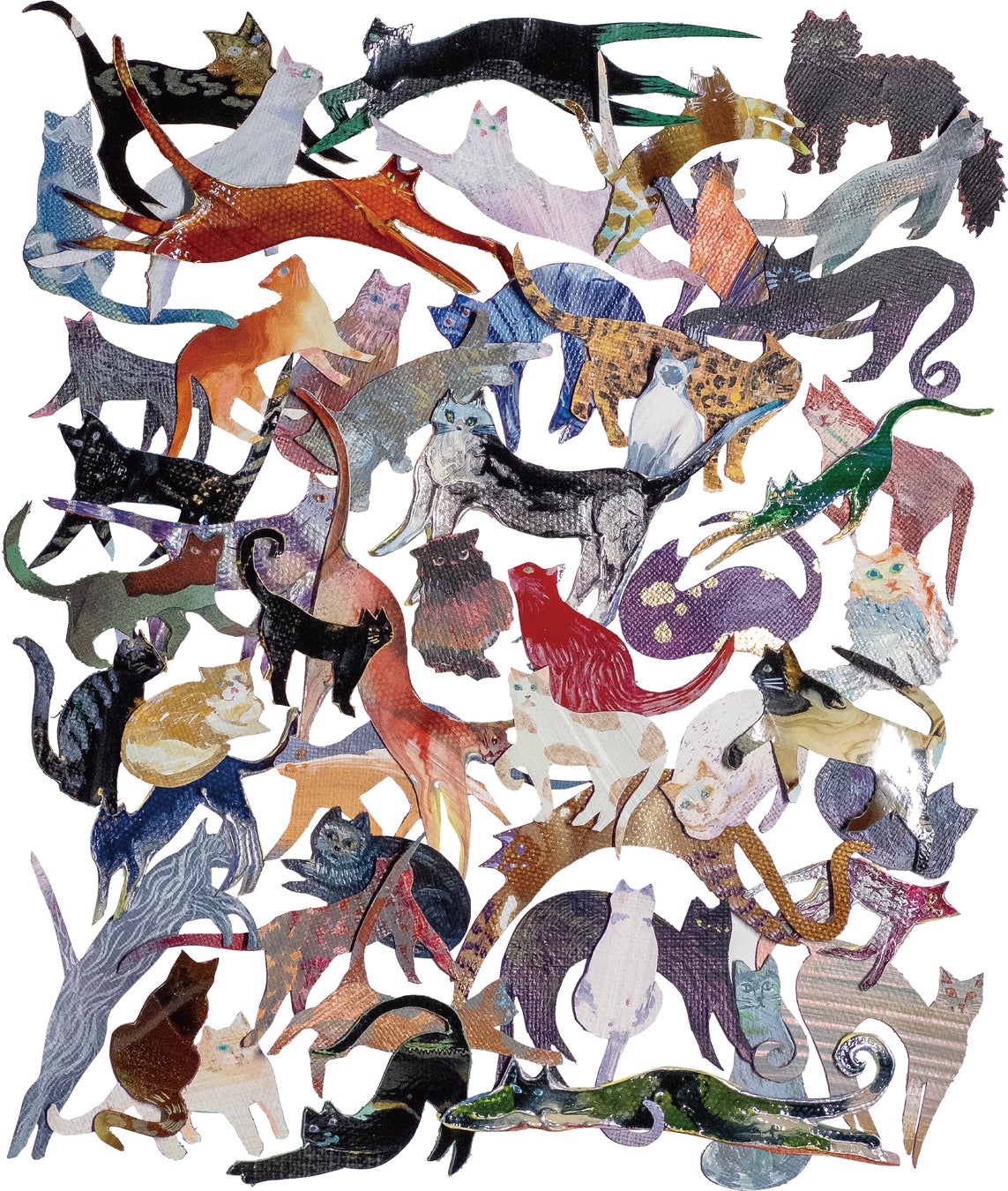 そうだ!大好きなネコ達に包まれて暑さも忘れよう!それから、ダイヤモンドダストを身にまとう。晴れた風のない朝、氷点下10℃以下のときに発生するダイヤモンドダストは、気中に浮かぶ氷の結晶が太陽の光を反射して輝く自然現象。カットしたキャンバス地のモチーフをピンで浮かせ、平面と立体の狭間の世界観を構築するシリーズです。