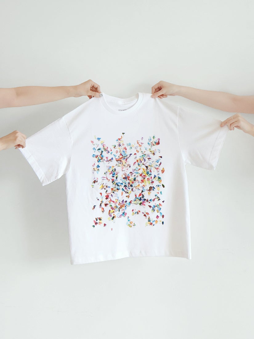 アーティストTシャツを制作する過程、それは、単に作品をプリントする行為ではありません。Tシャツという身近なアイテムに落とし込むことで、アートがより自由に、社会の中で生きはじめる——そんな可能性を見出しています。美術館やギャラリーを訪れるだけでなく、身にまとって街を歩くことで、これまでアートに触れることのなかった人の目に留まり、日常の中で新たな意味をもって受け取られていく。本プロジェクトは、アートを「鑑賞するもの」から「共に日常を過ごすもの」へと、視点を変える試みです。
