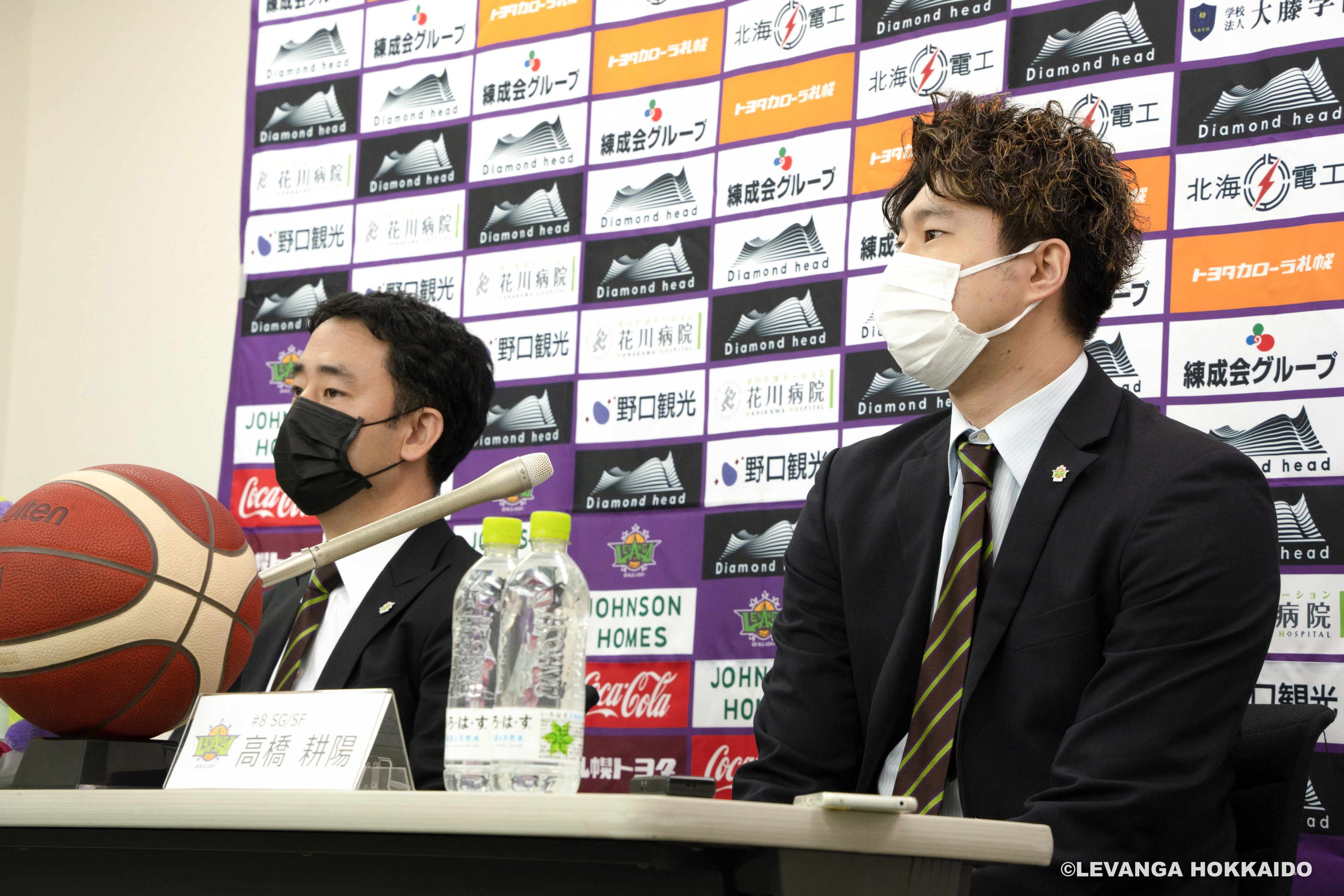「このたび、レバンガ北海道は、高橋耕陽選手と2022-23シーズンの契約に至りましたことを改めてご報告いたします。