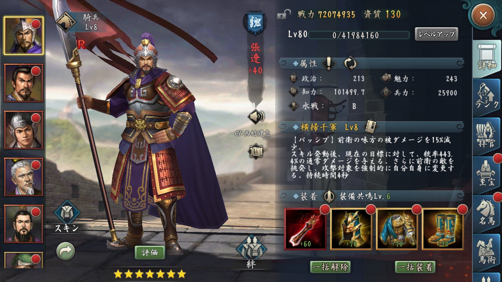 武将の水戦適応力が高いほど、本来より高い能力を発揮しますが、水戦適応力が低い場合は一部の実力しか発揮できません。