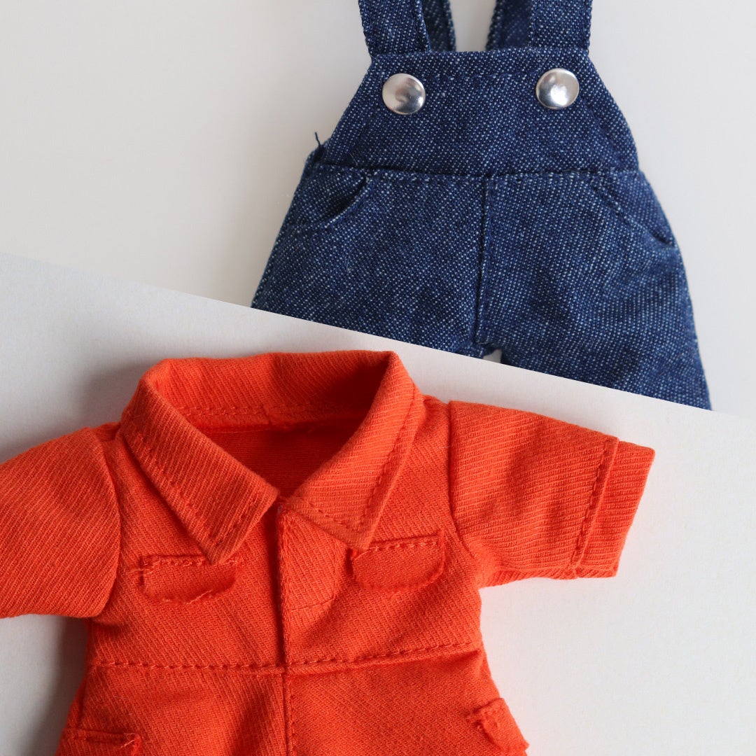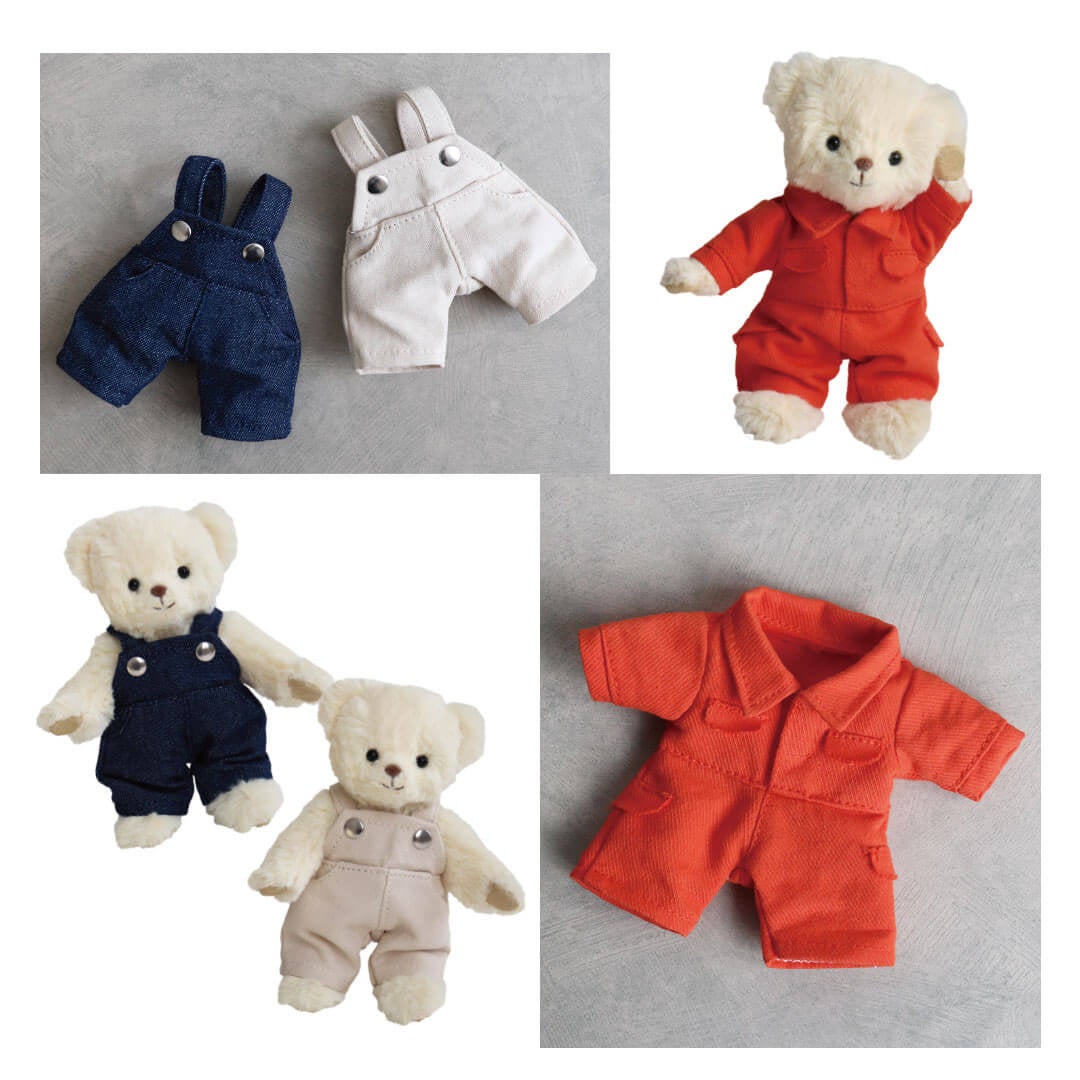 「本格的なワークスタイル」をミニチュア化 デニムの切り替えやリベットの細部までこだわったオーバーオールや、活発な印象を与えるオレンジのつなぎなど、人間顔負けのリアルな質感を実現しました。