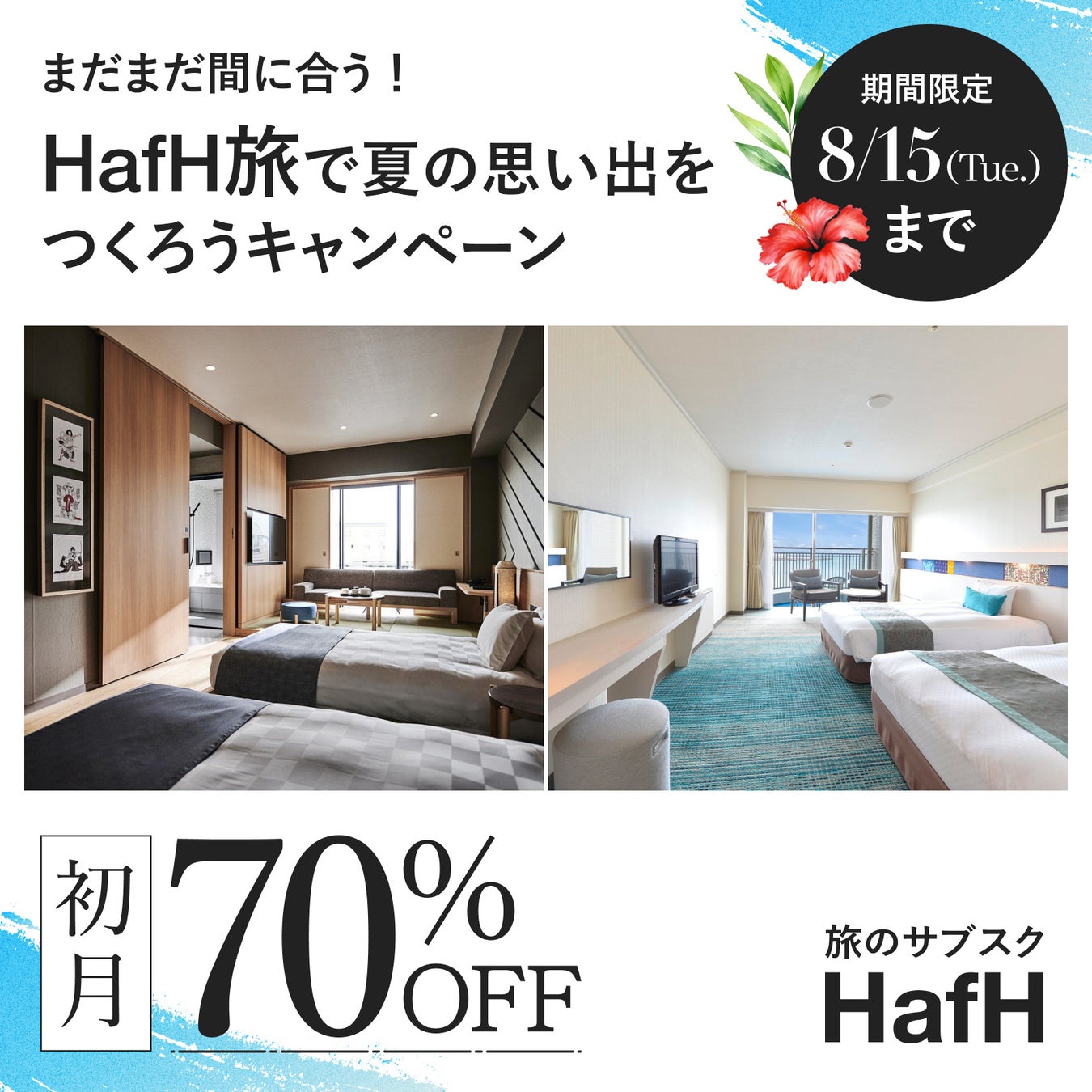 夏の駆け込み期間限定企画、初月70%OFF!旅のサブスク®「HafH(ハフ)」、7月26日(水)からキャンペーンを開始