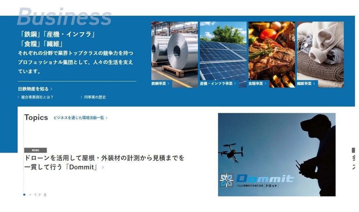 日鉄物産株式会社(以下、「当社」)は、公式ホームページのトップページをリニューアルしました。今回のリニューアルは、サイト内の情報を簡単に見つけやすく、スムーズに提供するために行いました。
