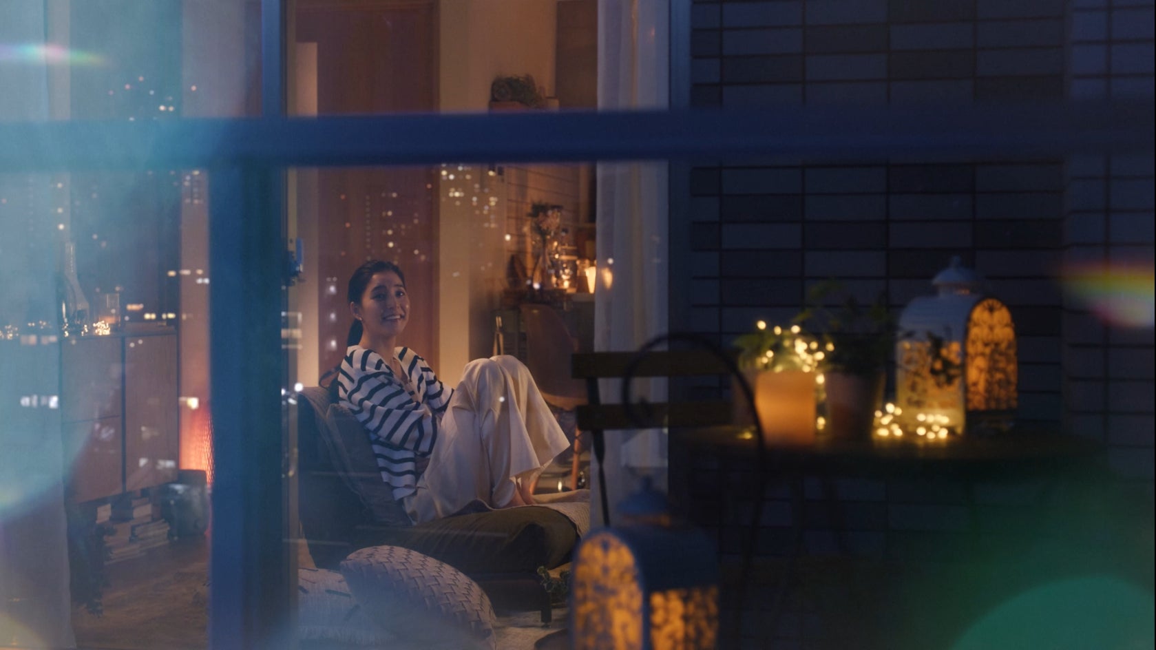 東京の自宅でくつろぐ新木さん。同様に地方都市の自宅でくつろぐ福士さん。2人は1,000キロ離れたお互いの自宅で、それぞれタブレット端末、スマートフォンを手に、一緒に「TWINKLE RACE」を楽しんでいます。2人で同じレースを観戦している中、「ひとり、満喫しちゃってるかも。」と新木さんが悪戯っぽくつぶやくと、「おーい。」とツッコむ福士さん。会話を楽しんでいる間に、レースも佳境に入り、競走馬たちがゴールイン。レースの興奮冷めやらぬ中、自然と星空を眺める2人。「見えた?」、「見えたよ。」と、言葉を交わし、離れていながらも、心を通わせ合いました。