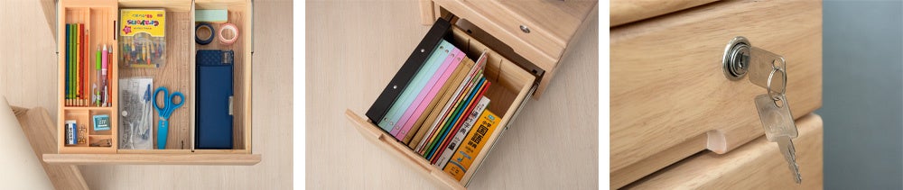 上棚にはそのほかにも、「飾り棚」「ミニ引き出し」などの収納を備えています。