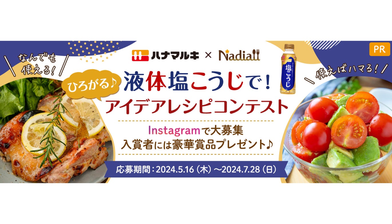レシピサイト「Nadia」とハナマルキ株式会社がタイアップ!液体塩こうじのInstagramレシピコンテストを開催!