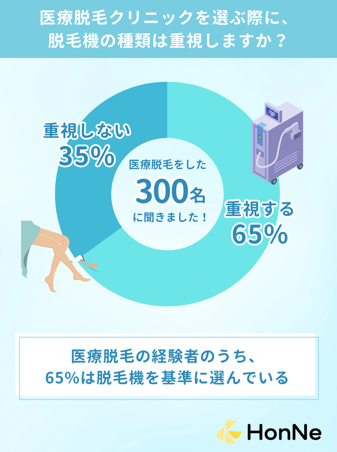 医療脱毛経験者の人の65%は、脱毛機の種類を見て契約するクリニックを選んでいることがわかりました。