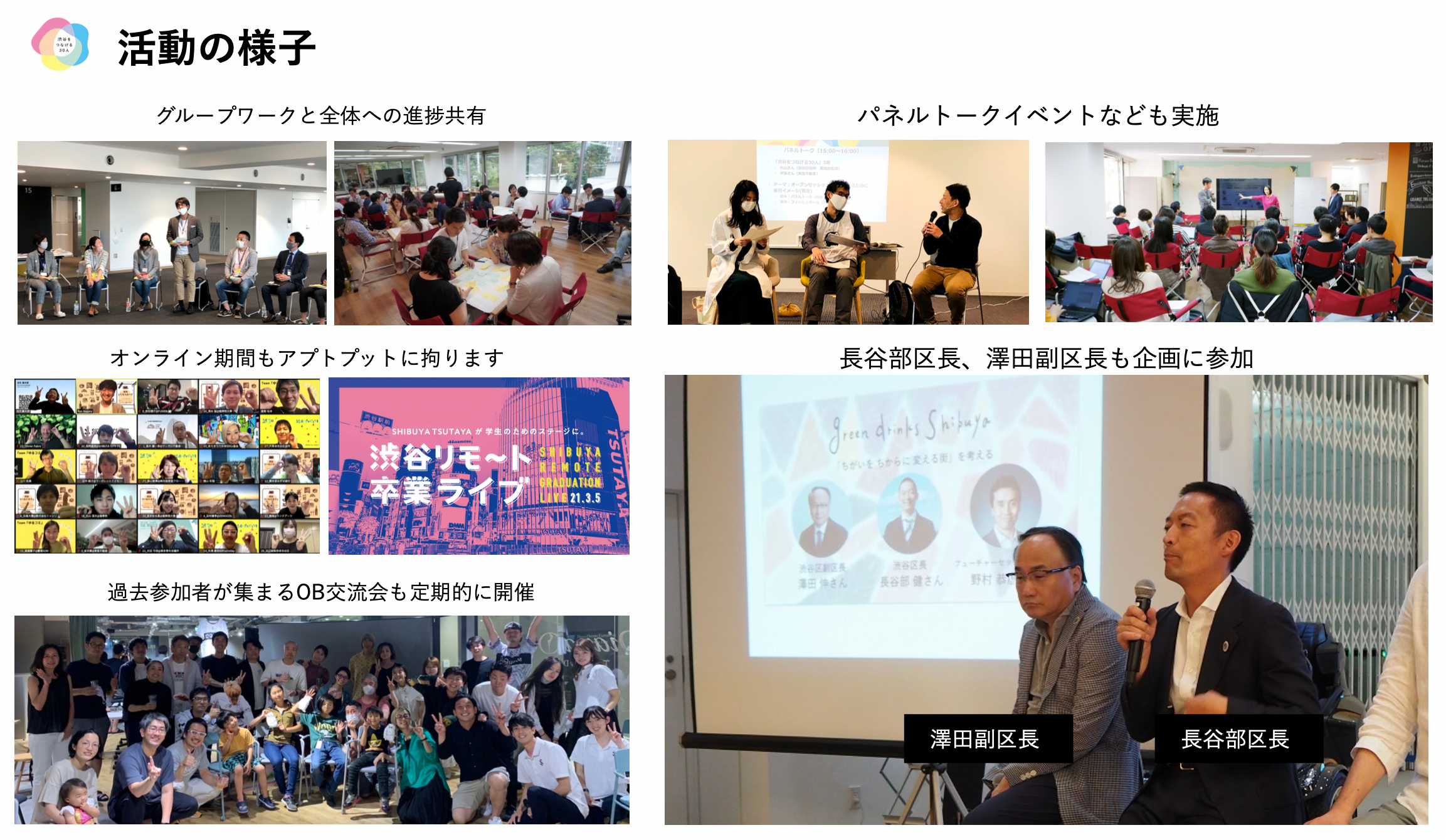 毎年最終報告会には、渋谷区長、副区長をはじめ様々な区内のステークホルダーが参加し、アイデアの実現に向けて推進してきました。