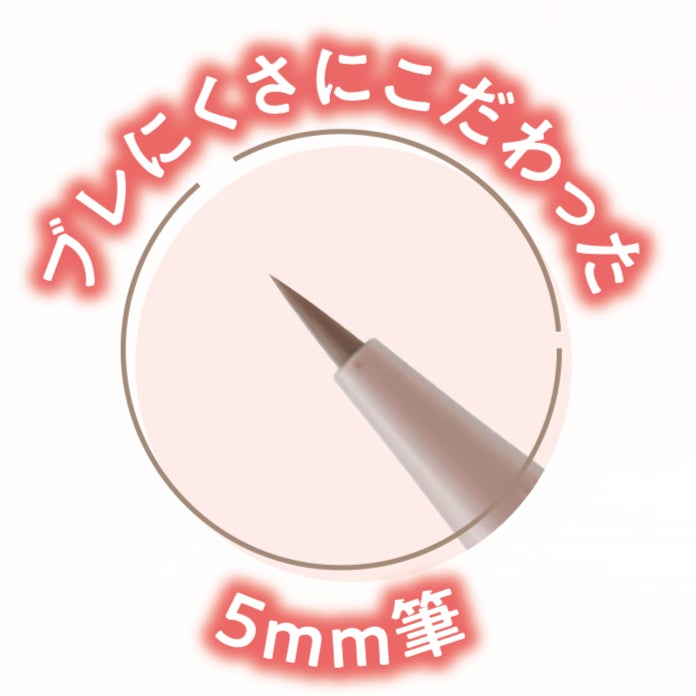 5mmのショート筆のアイライナー。筆のコシを少し強めに調整することで筆先がピンポイントにしなり、目元にしっかりフィットしてブレにくく、安定感のある描き心地を実現。目頭から目尻まで一定の細さでラインが描け、難しい目尻のハネラインも思いのまま!
