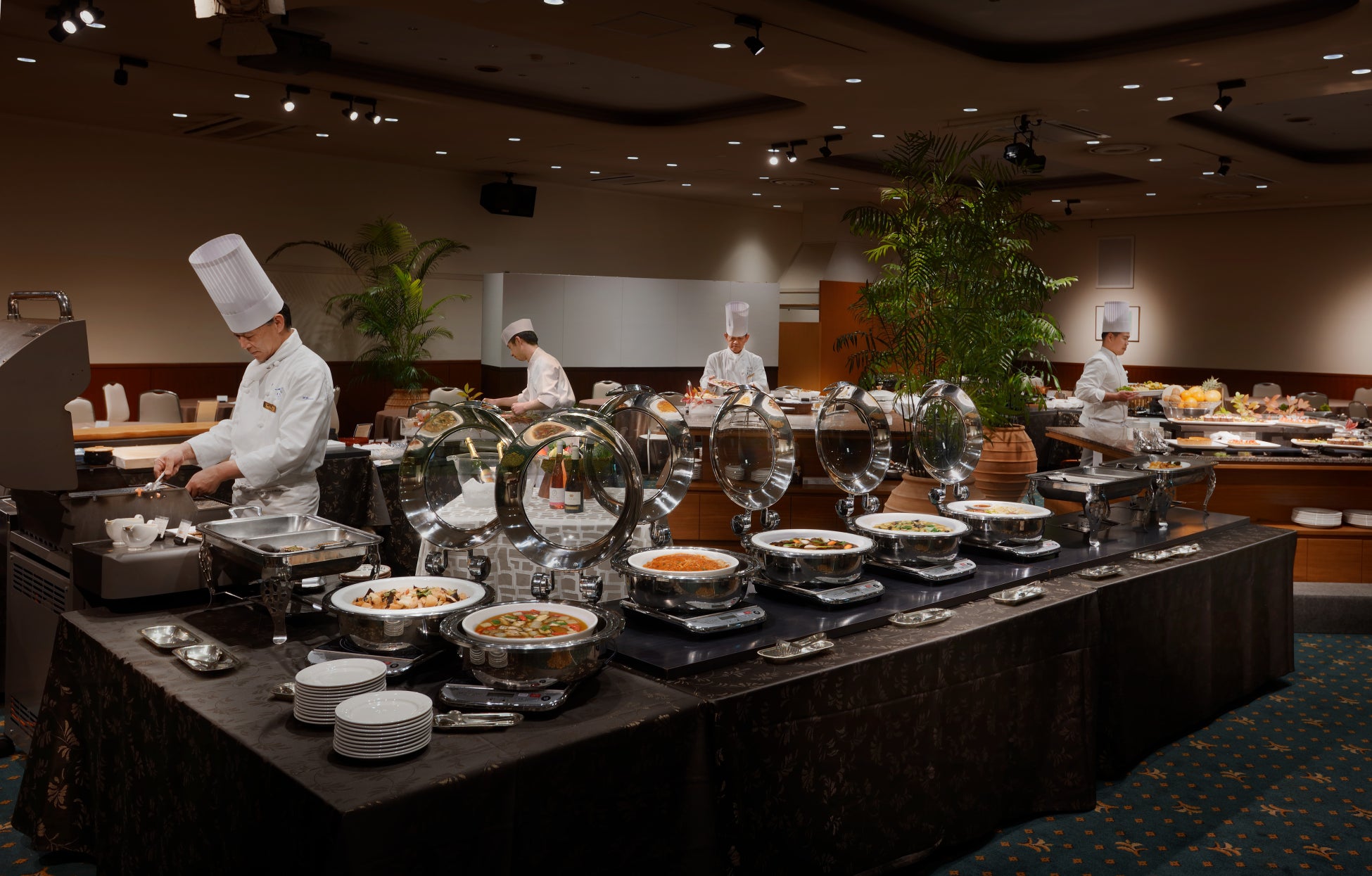 ライブ感あふれるシェフズコーナーでは、松阪牛のタコスや、三重県産檜扇貝と真鯛のスープ、ローストビーフなどを提供いたします。