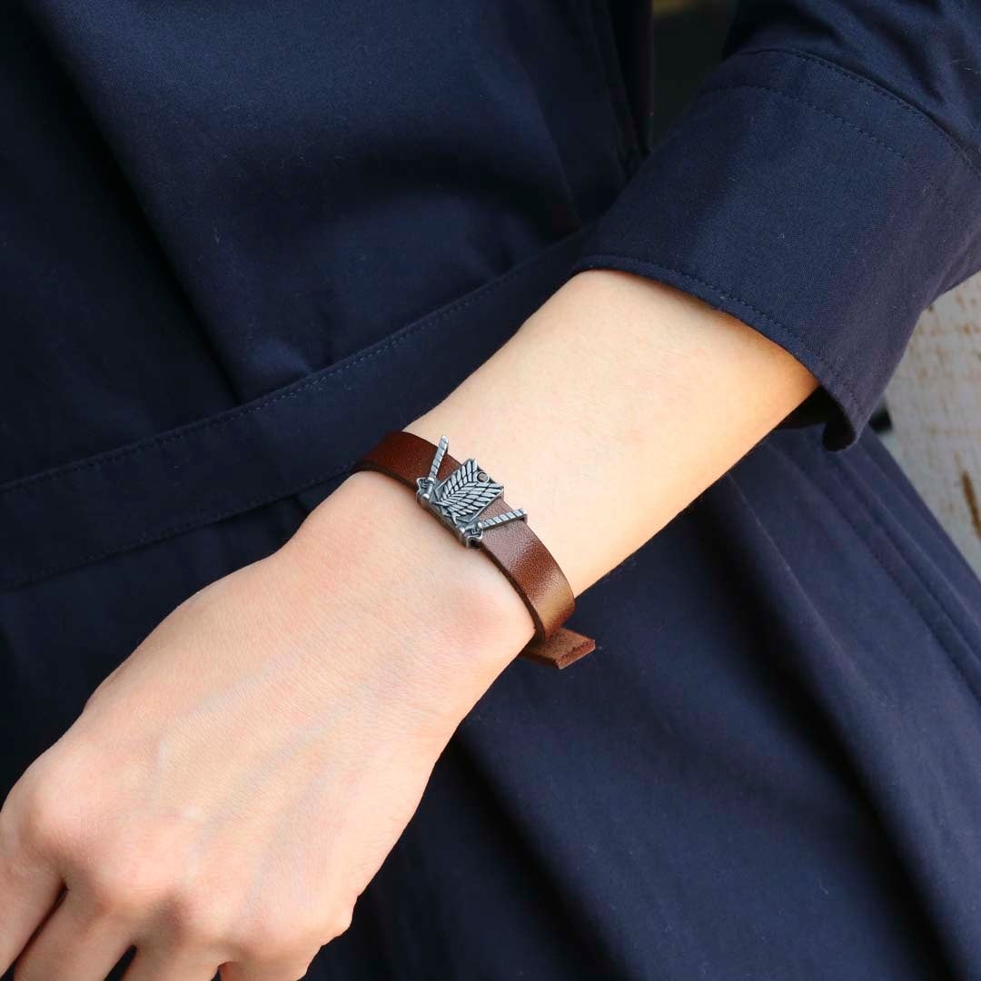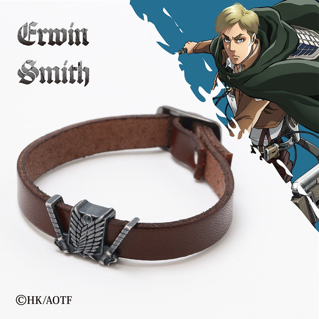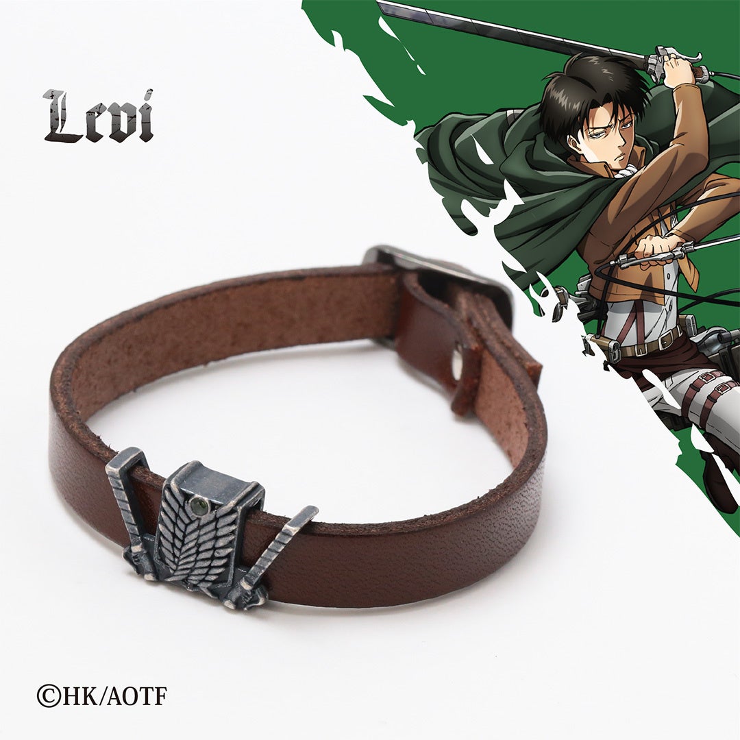エレン、ミカサ、アルミン、リヴァイ、エルヴィン、ハンジをイメージした重厚感ある本格レザーブレスレット。