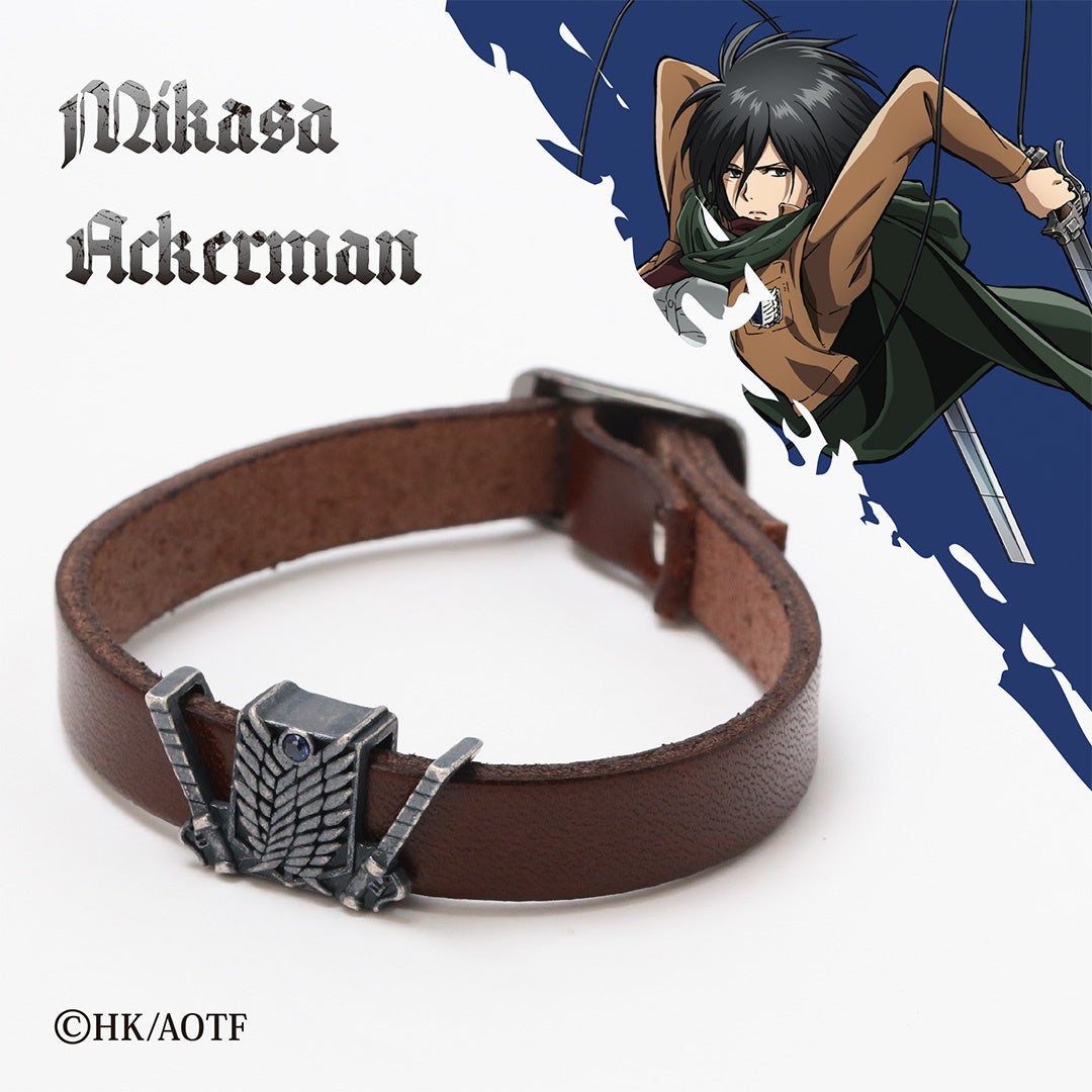 ブレス本体は調査兵団が身に着けているベルトを彷彿とさせるようなシンプルなデザインに仕上がりました。ミカサの戦いを身近に感じてください。