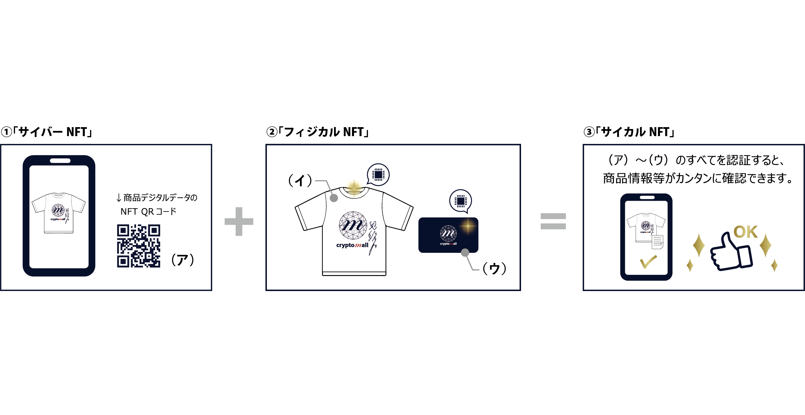 「サイカルNFTマーケットプレイス」とは、マーケットプレイス上で「サイバーNFT」を購入すると、当該商品の「フィジカルNFT」付き商品が、「真贋証明」および 「サプライチェーン(トレーサビリティ)」を100%担保した状態で、お手元に届くという全く新しい形式のマーケットプレイスです。