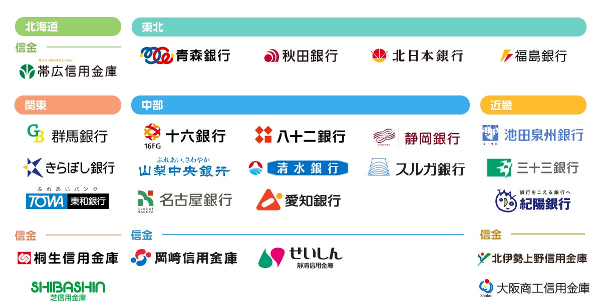 芝信用金庫、帯広信用金庫、岡崎信用金庫、北伊勢上野信用金庫、静清信用金庫、大阪商工信用金庫