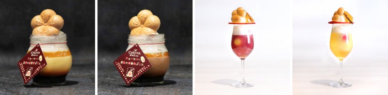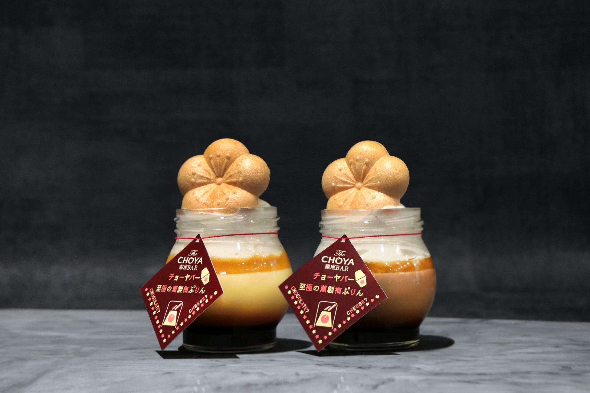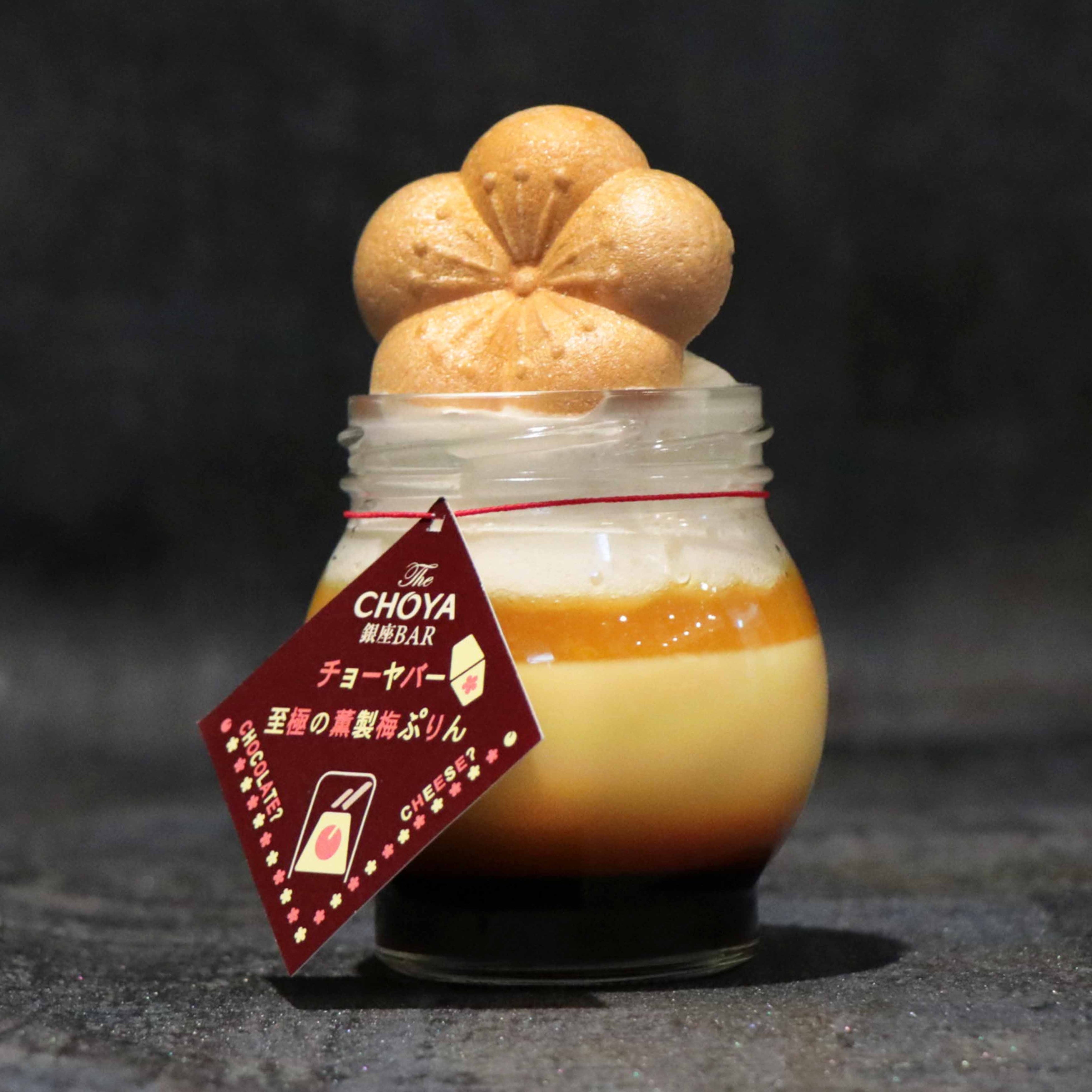 「チョーヤバー 至極の薫製梅ぷりん」は、「梅づくしアフタヌーンティー&ハイティー」プランのデザートメニューとして開発。その他、期間限定発売中の干し焼き芋な梅酒カクテルクリームソーダ「The CHOYA 月夜 (ツキヨル) 」「The CHOYA Ohichou (オオイチョウ) 」を加えた計4種からお好きなデザートを1つお選びください。4種全て、本格梅酒を使用したアルコールタイプとノンアルコールタイプに対応しております。