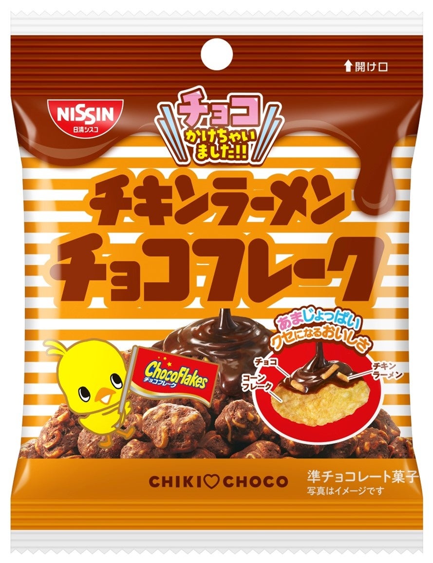 「チキンラーメン チョコフレーク」は、日清食品が1958年に発売した世界初のインスタントラーメン「チキンラーメン」と日清シスコの「チョコフレーク」がコラボレーションした商品で、今年1月にコンビニエンスストア限定で発売したところ、多くのお客さまからご好評をいただきました。