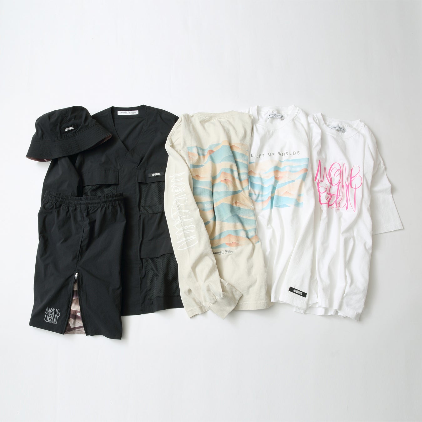 また、フロントにペンライトアートをモチーフにした両ブランドのロゴをプリントしたデザインの半袖Tシャツは、バックに特別に作られた両ブランドのネームラベルが、コラボレーションをさりげなく主張しています。