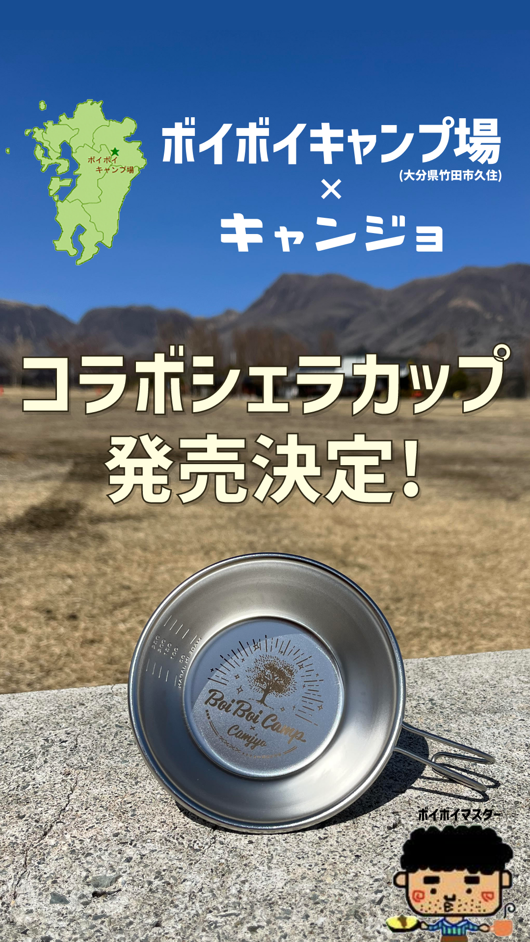 九州のキャンプを盛り上げる、キャンジョとボイボイキャンプ場がコラボ!オリジナルデザインのシェラカップの発売を開始しました!