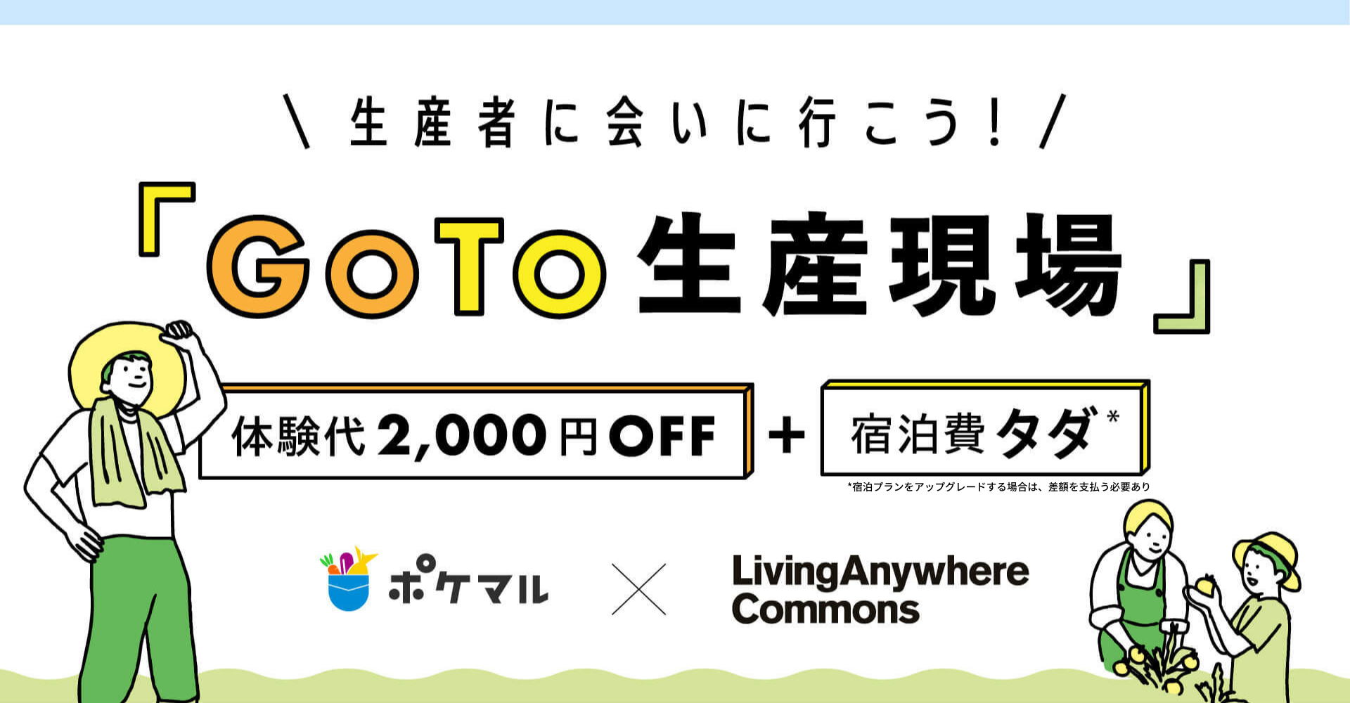LivingAnywhere Commonsと、宿泊と食の生産現場での体験がセットの新サービス「生産者さんに会いに行こう!ポケマル×LAC GOTO生産現場」を開始