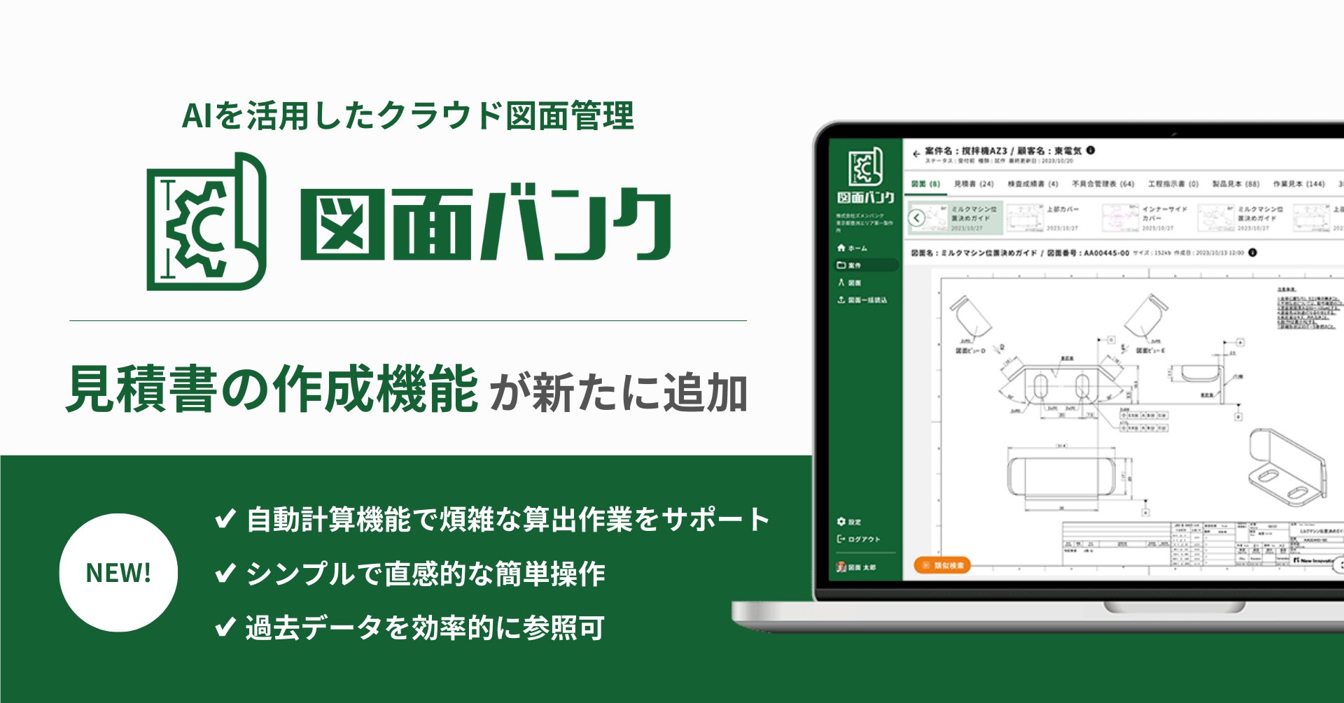 AIを活用したクラウド図面管理システム「図面バンク」に見積書の作成機能が新たに追加