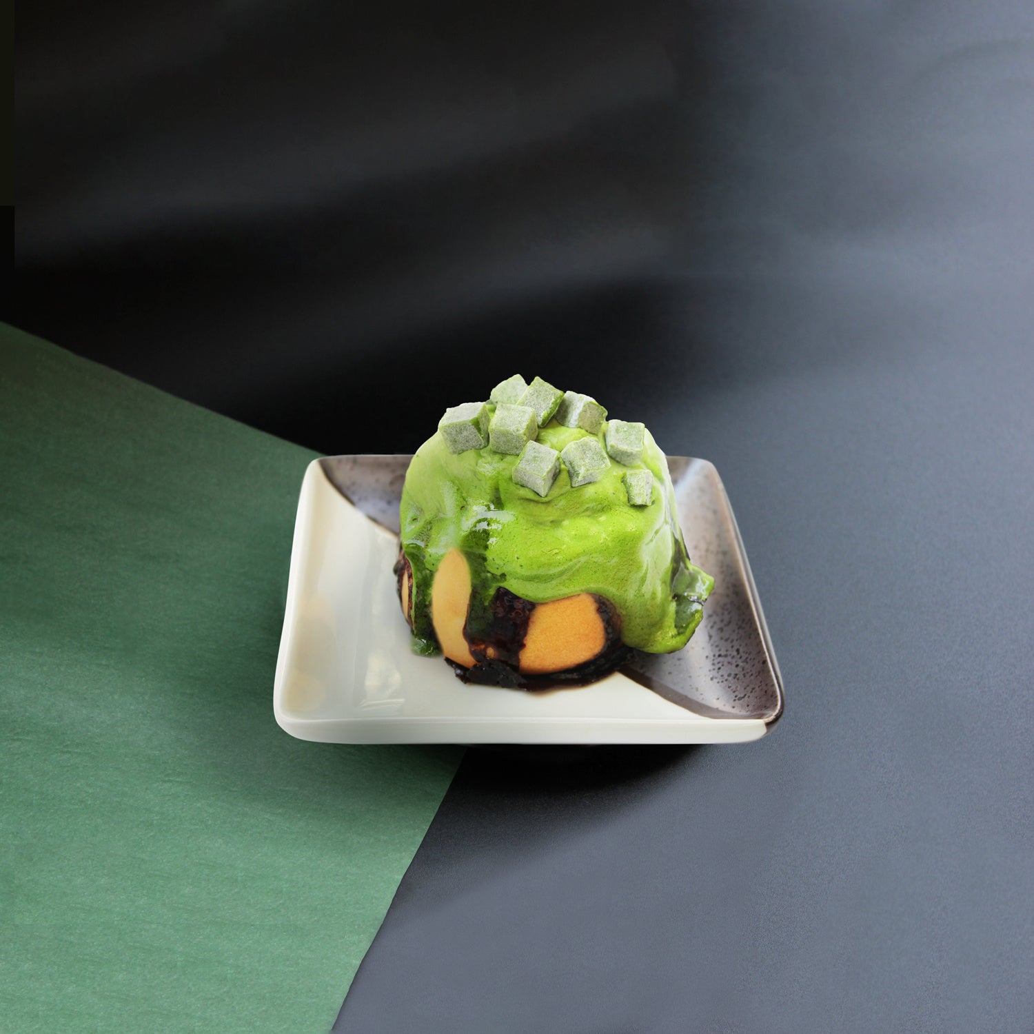 トッピングにあしらった抹茶の生チョコは、ほろ苦い和のテイストをより一層楽しませてくれます。