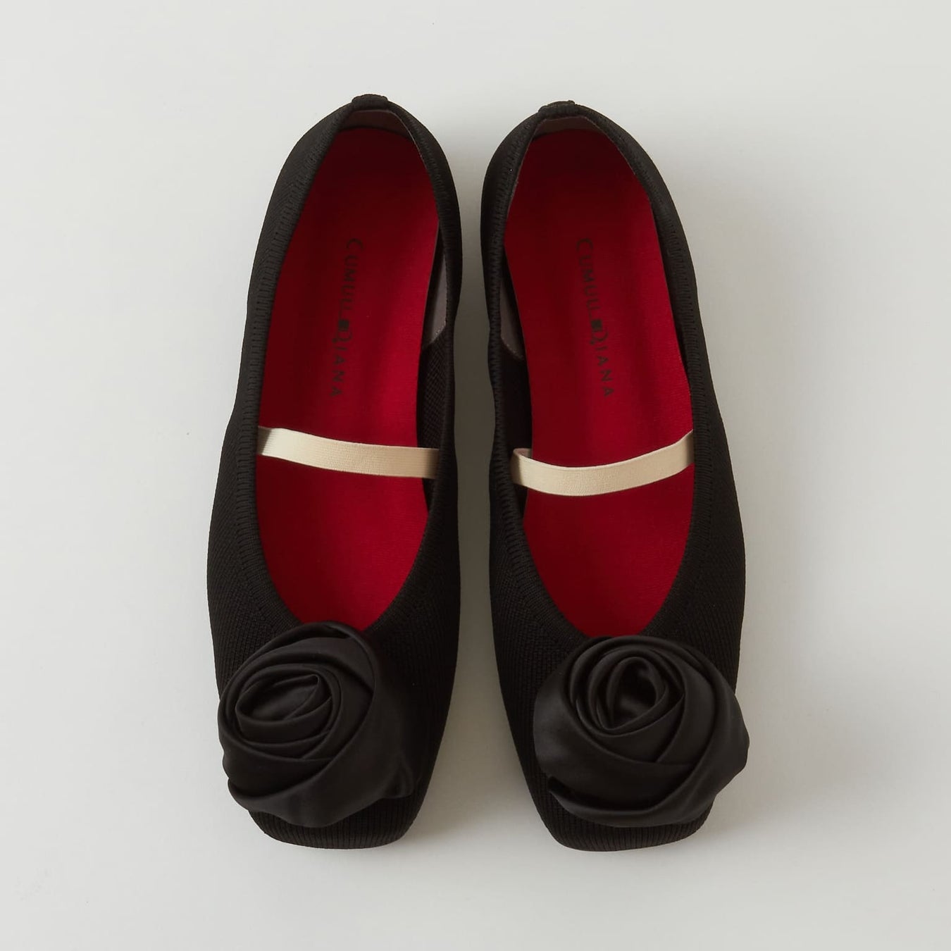 ダイアナ株式会社(本社:東京都渋谷区神宮前)が展開する、しなやかに、軽やかに、踊れるほど履きやすいニットシューズを提案するブランド「CUMUU_DIANA(クムウ_ダイアナ)」より新作商品のご案内です。スクエアトゥのバレリーナシューズに、バレエコアムード漂う薔薇コサージュを大胆にあしらった、ドラマティックなデザインです。ただ甘いだけではない、大人のコケティッシュな魅力を表現しています。