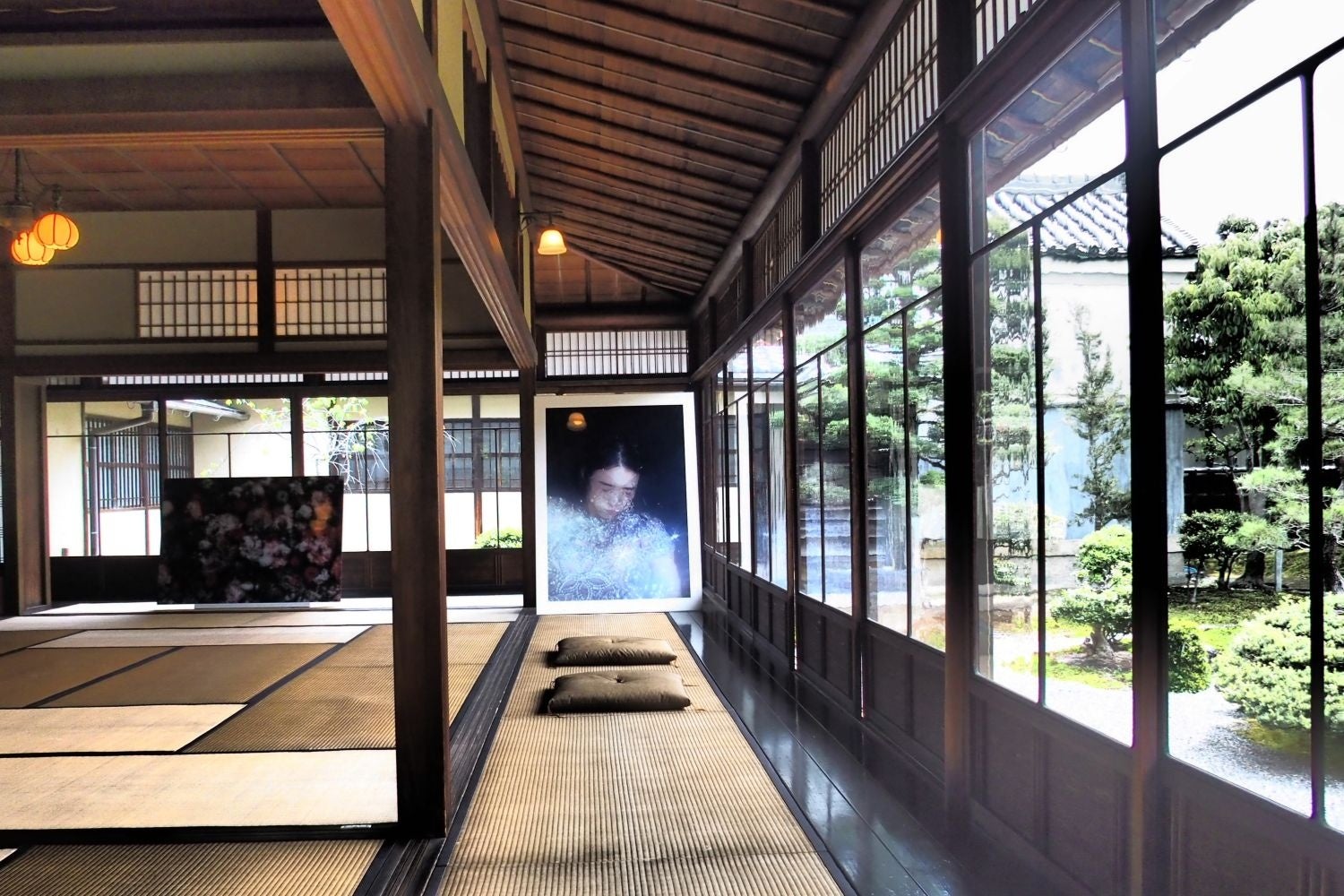 和室から庭園を望む展示空間では、差し込む自然光によって、写真と庭の風景が溶け合うように共鳴します。隣接する月桂冠大倉記念館の中庭で目にすることのできる湧き水(井戸)の清らかさと、作品世界がどこかシンクロするような感覚を、ぜひ会場でご体感ください。
