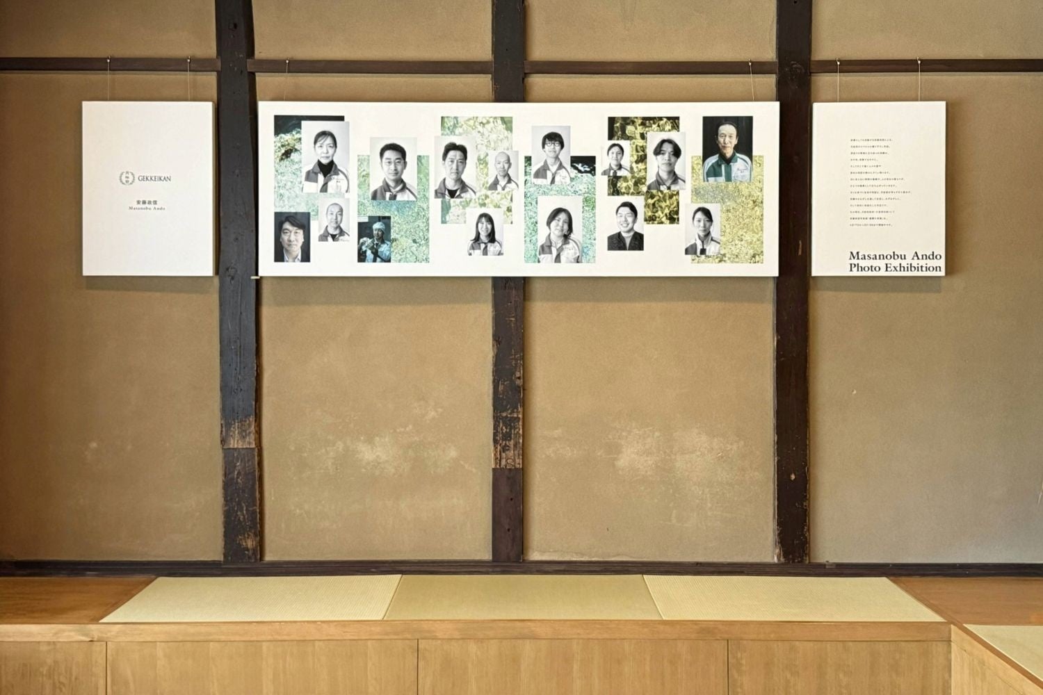 本展の開催にあわせ、安藤政信が月桂冠の酒造りの現場に立ち会い、制作した撮りおろし作品も誕生しました。水や米、発酵するモロミ、そしてそこで働く人々の営み。目に見えない時間の蓄積をみずみずしく、かつ詩的にすくい取った本作は、会期中、月桂冠大倉記念館エントランスに掲示しています。