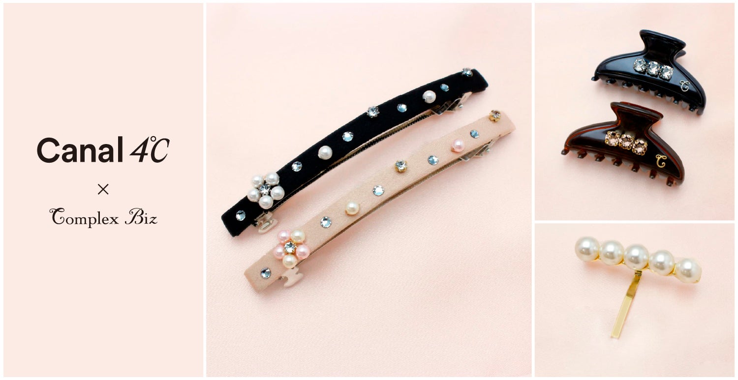 ヘアアクセサリーメーカーのパイオニアとして1974年の創業以来、「Complex Biz」が培ってきた高品質なヘアアクセサリーに、「Canal 4℃」の愛らしいエッセンスを加えたデザインが、ファッションを豊かに彩ります。一見シンプルに見える装飾も、ベースとのバランスやスワロフスキー・クリスタルのサイズ、カラーなど細部までこだわりました。シンプルだからこそ、ネックレスやピアスとのコーディネートをお楽しみいただけます。