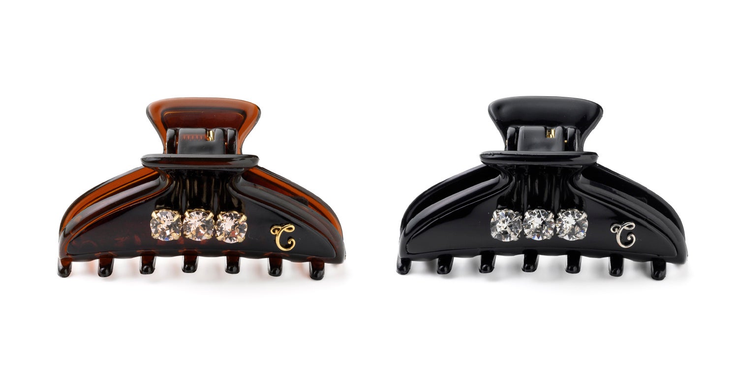 滑らかなラインが上品なバンスクリップにスワロフスキー・クリスタルとアイコンのロゴをあしらいました。